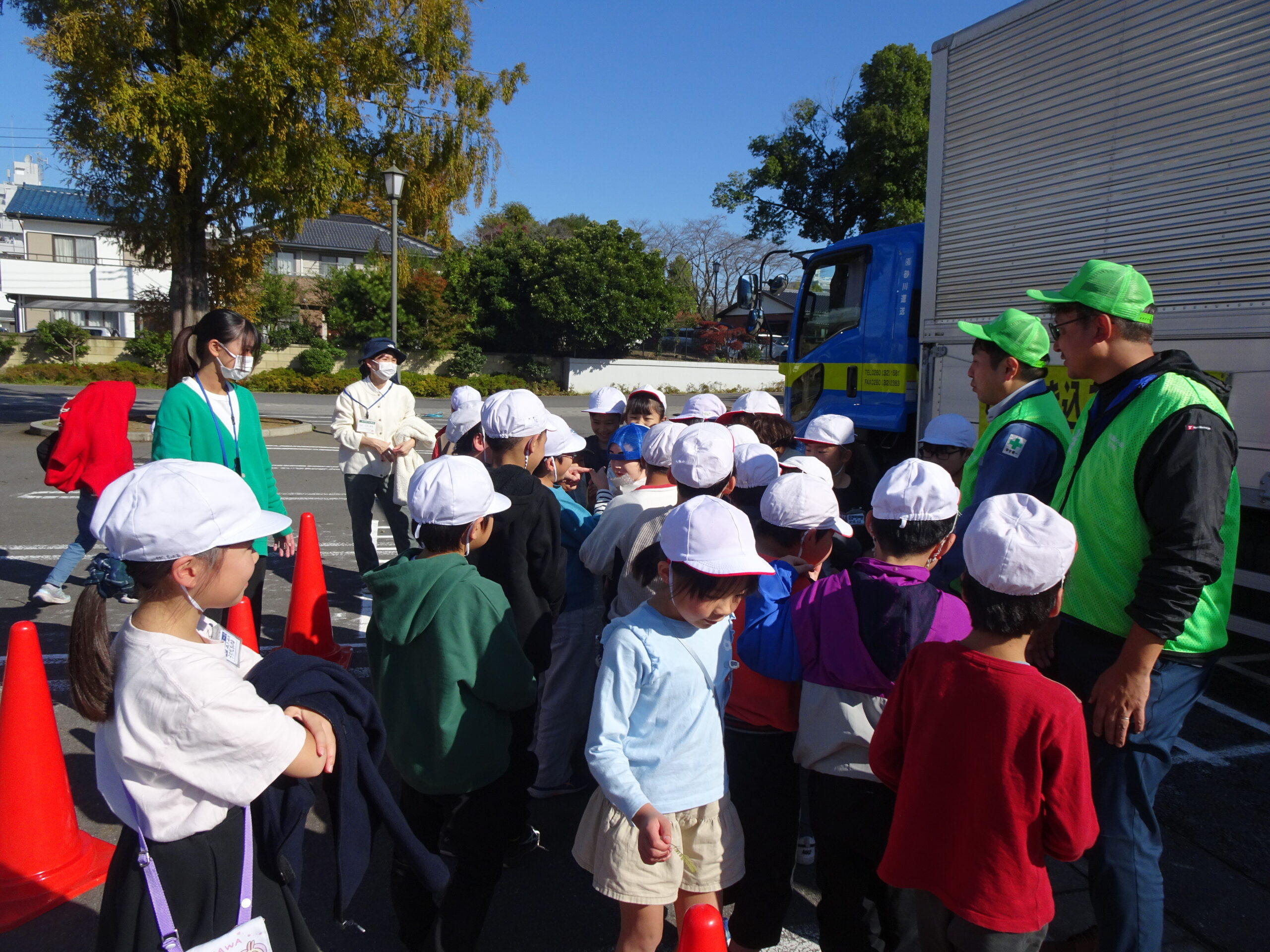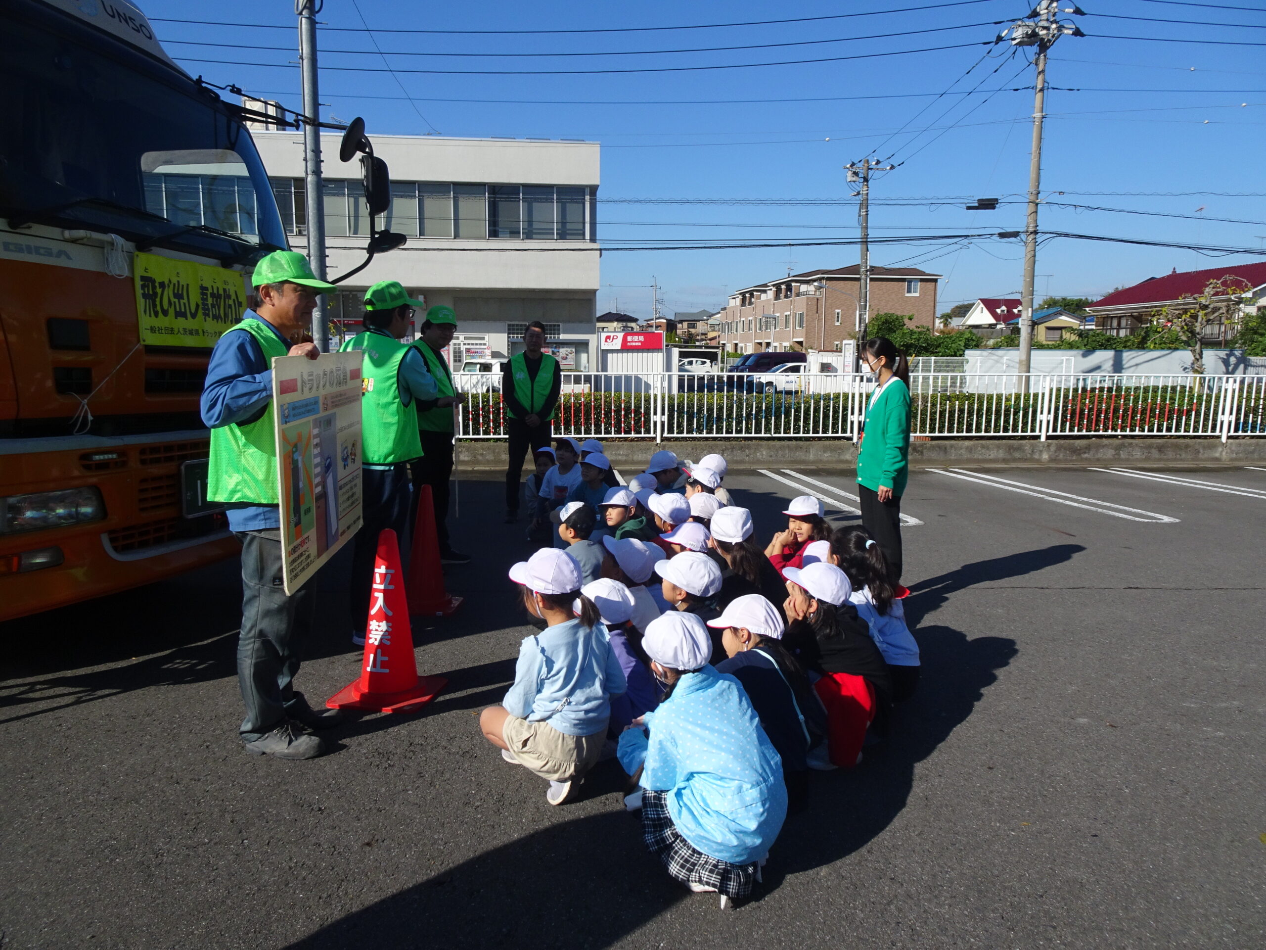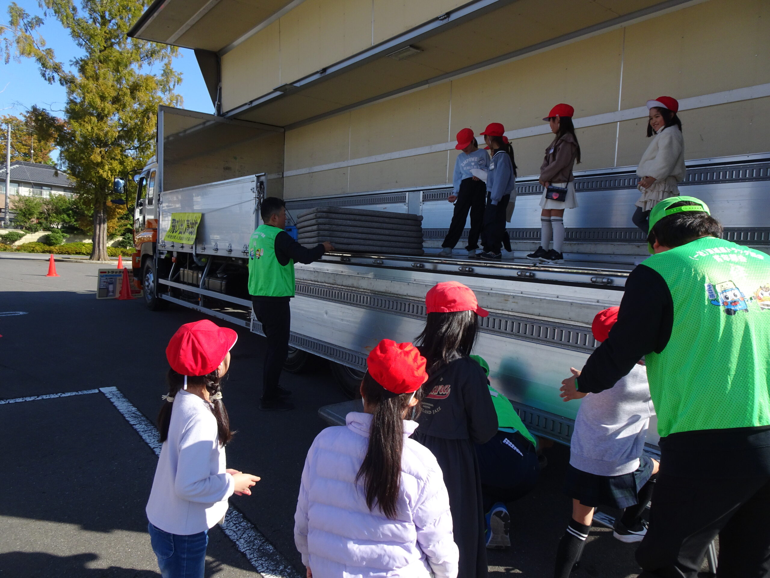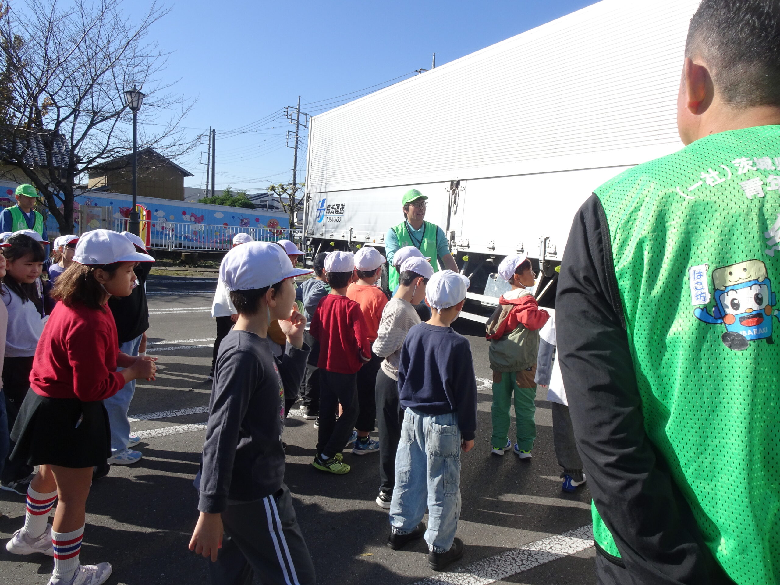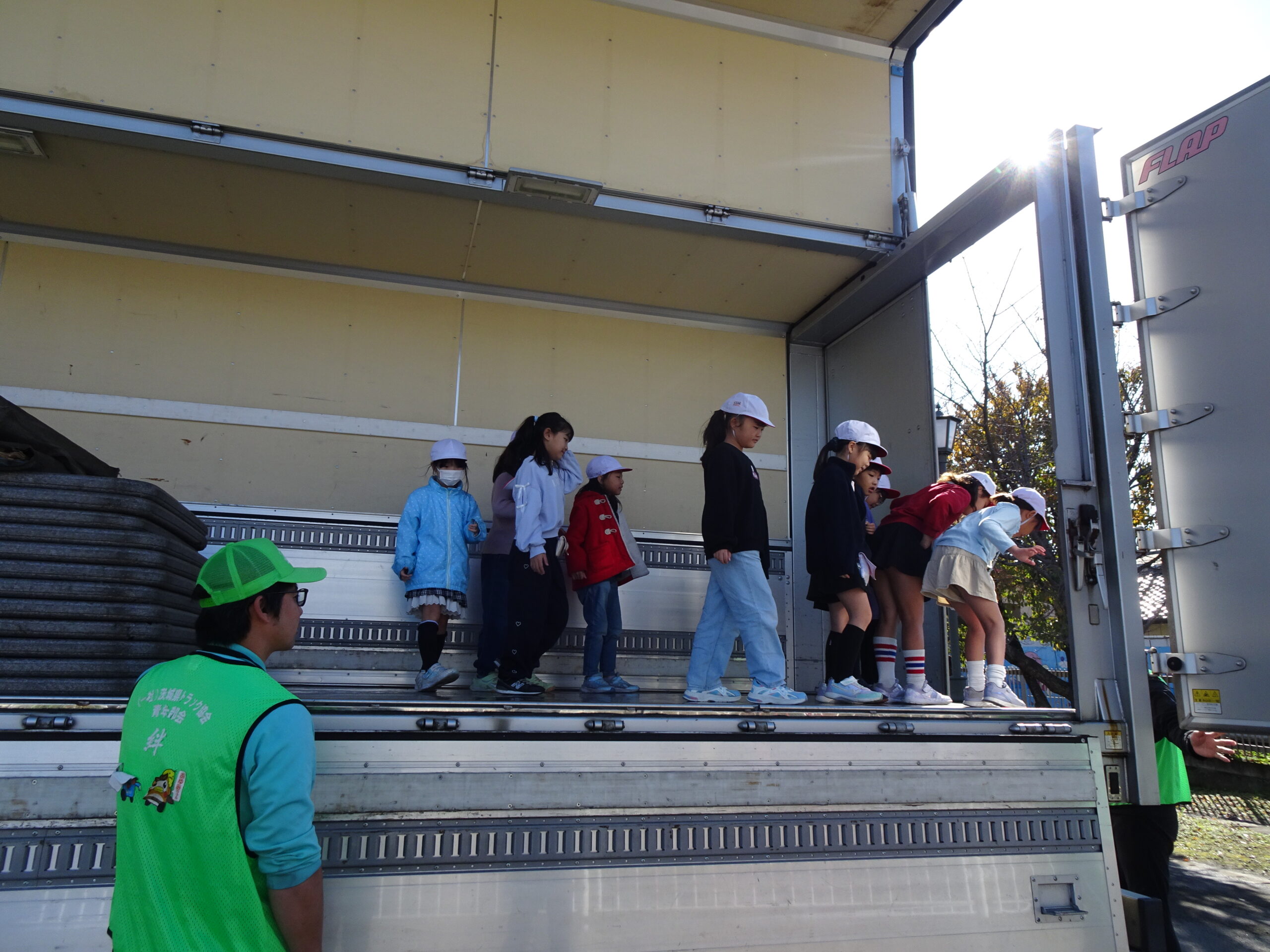トラック協会の方々に交通安全についてお話を聞きました。 「内輪差」や「死角」といった難しい言葉を、実際にトラックを走らせていただいたり、運転席に乗ったり体験することで、横断歩道でも前にいすぎては危ないこと、運転席から見えない部分があるということを学習することができました。 トラックの荷台に実際に乗ってみると、「高かった」「広かった」との感想がありました。 運転席に実際に乗った感想では、「確かに見えない部分があった」「乗るのが大変」などがありました。 あらためて、交通安全の大切さや登下校で気をつけて歩いていくことを実感する時間となりました。