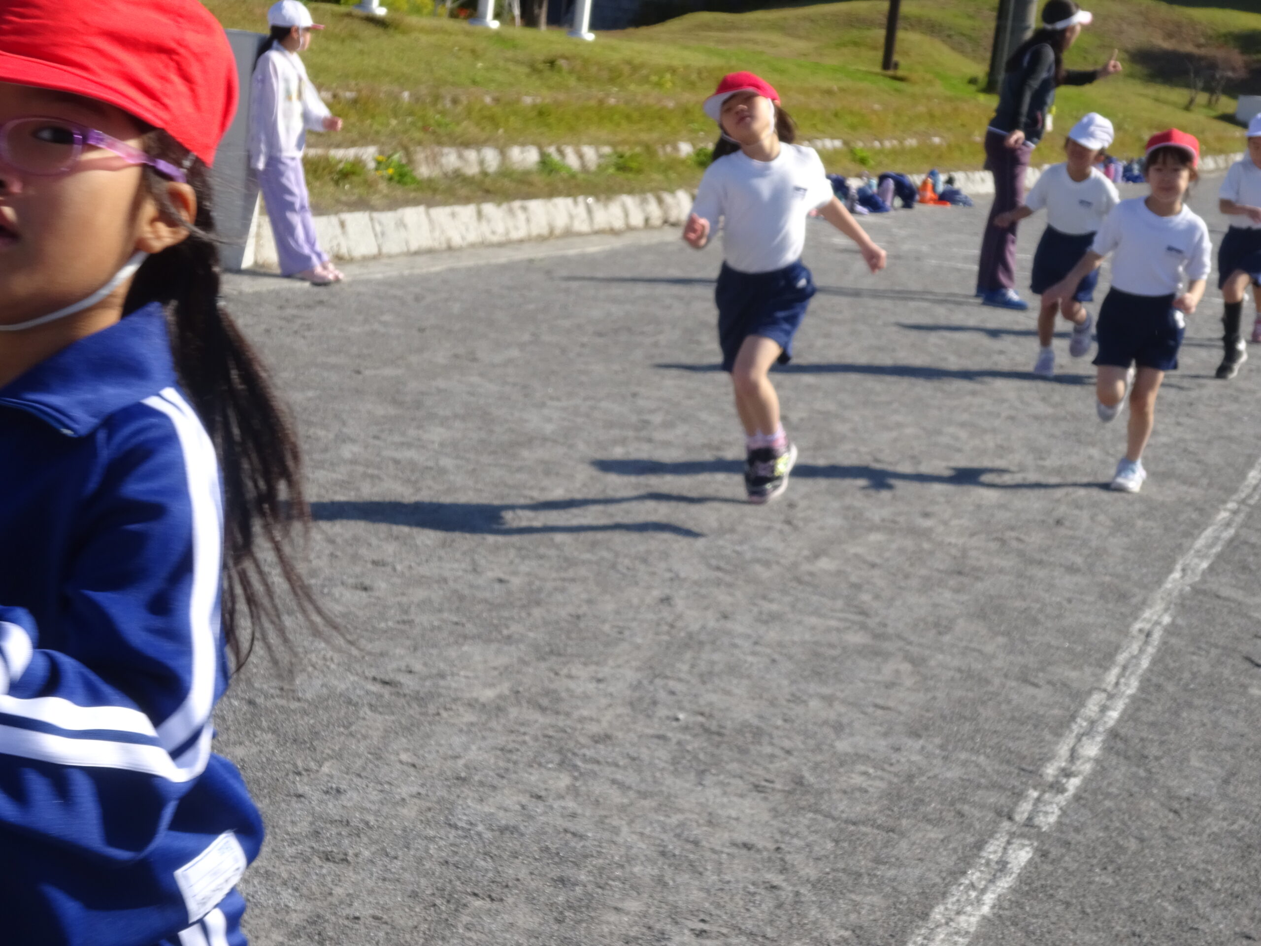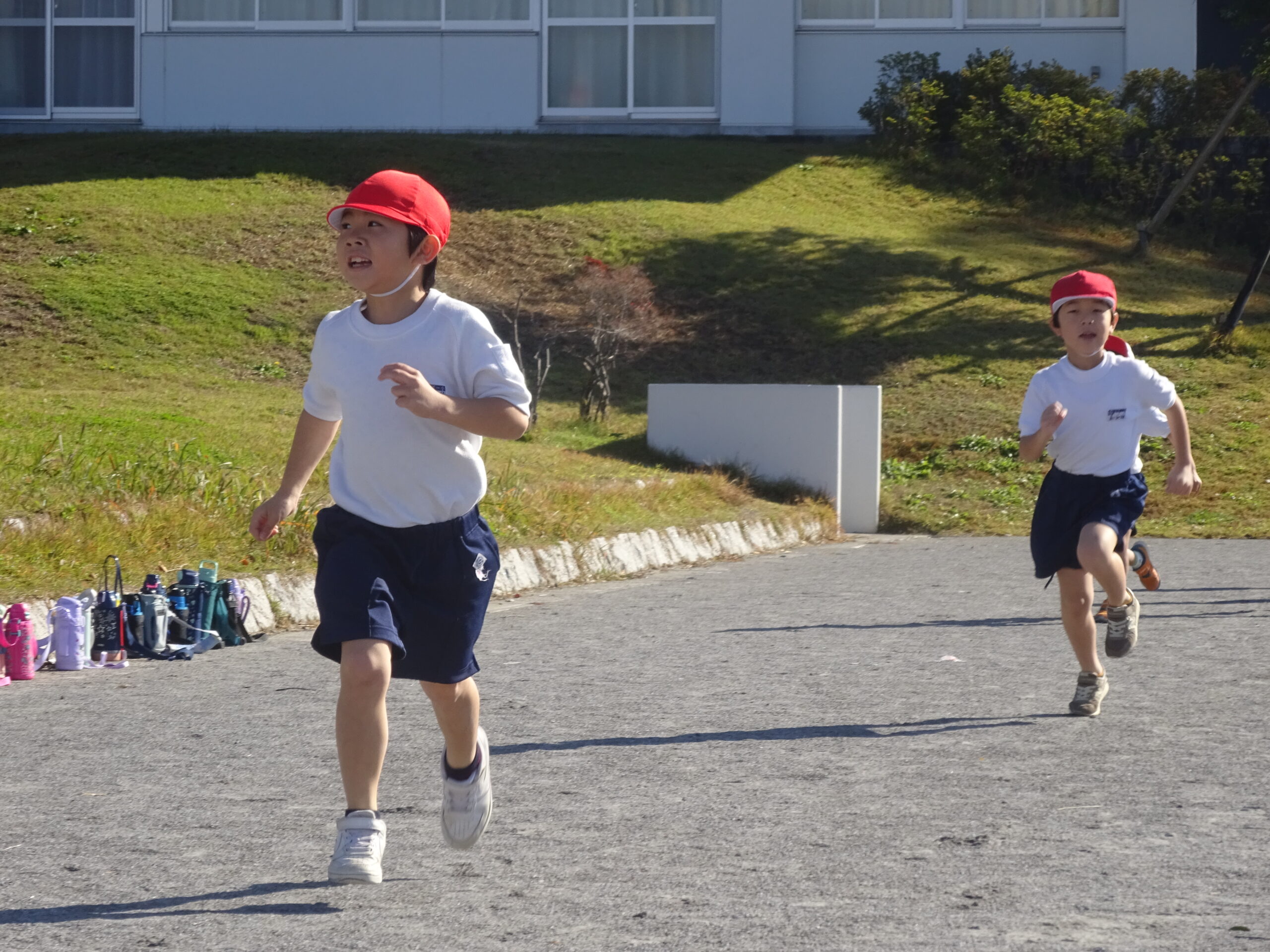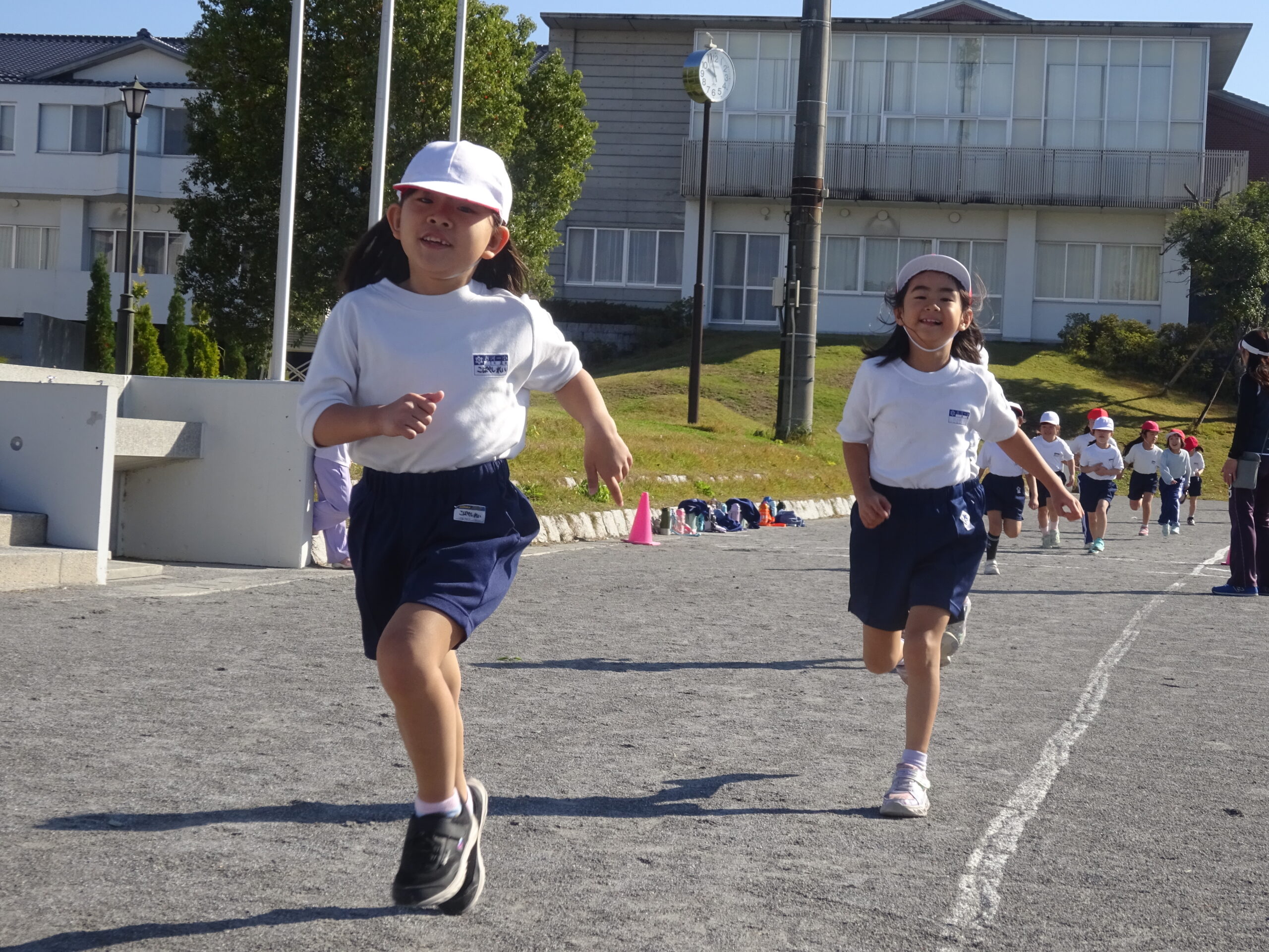 小学校初めての持久走が、来月に控えています。1年生も、初めて体育の時間に本番のコースを走ってみました。ゴールまで、走り続けるためにはどんなスピードで進めばいいのかを考えながら、最後まで諦めない気持ちで頑張りました。来週からは、タイムを計測し、ベストタイムを目指して走ります。業間ランニングも頑張りましょう!