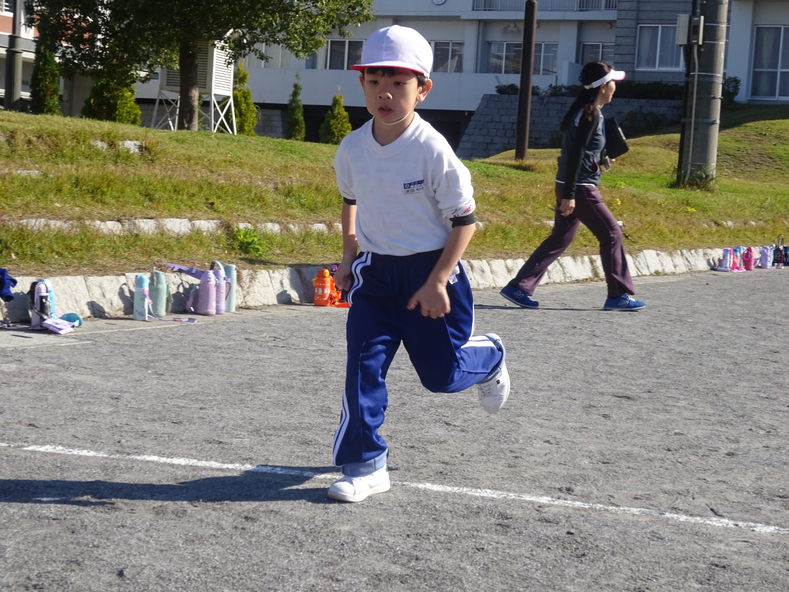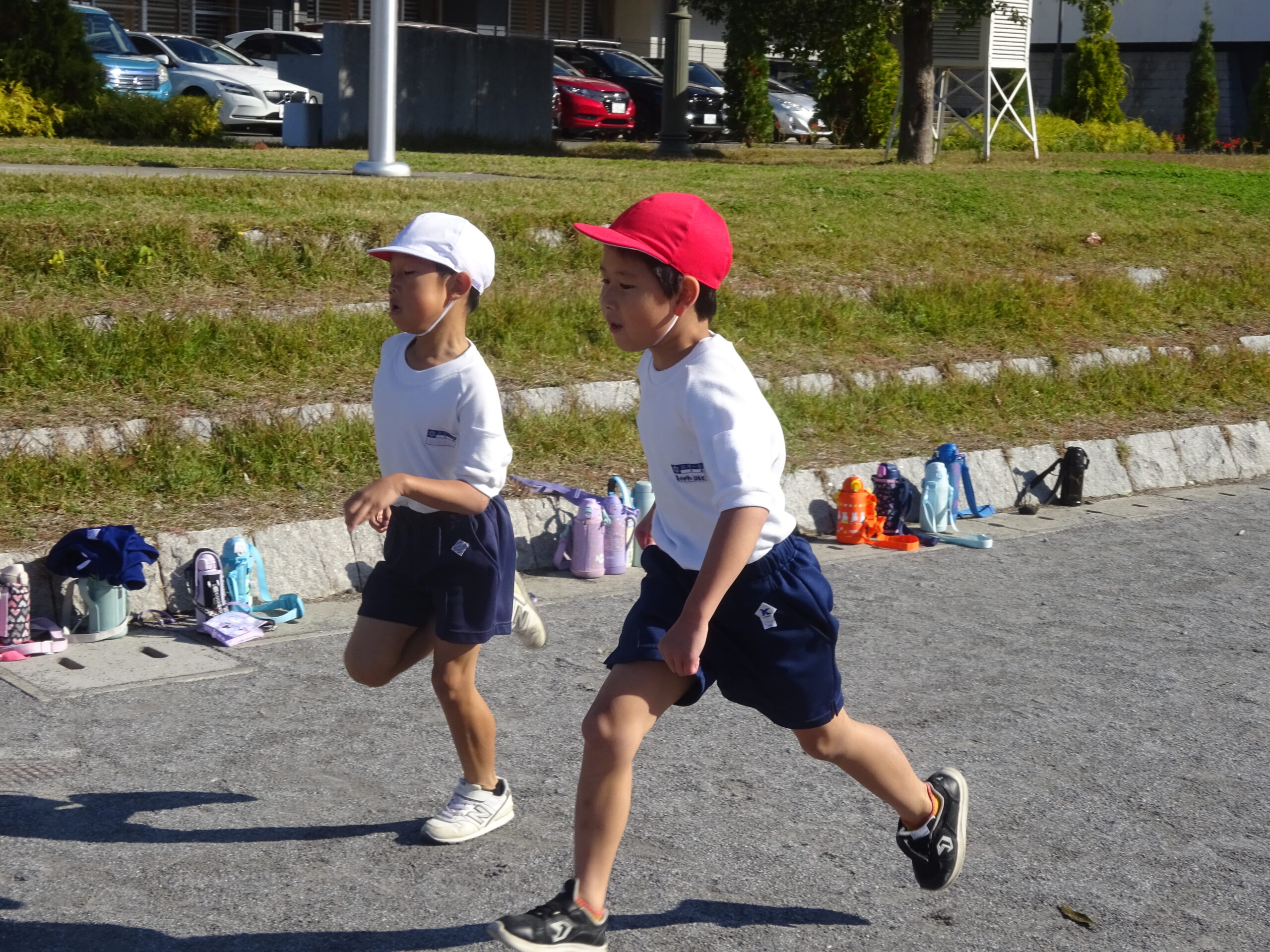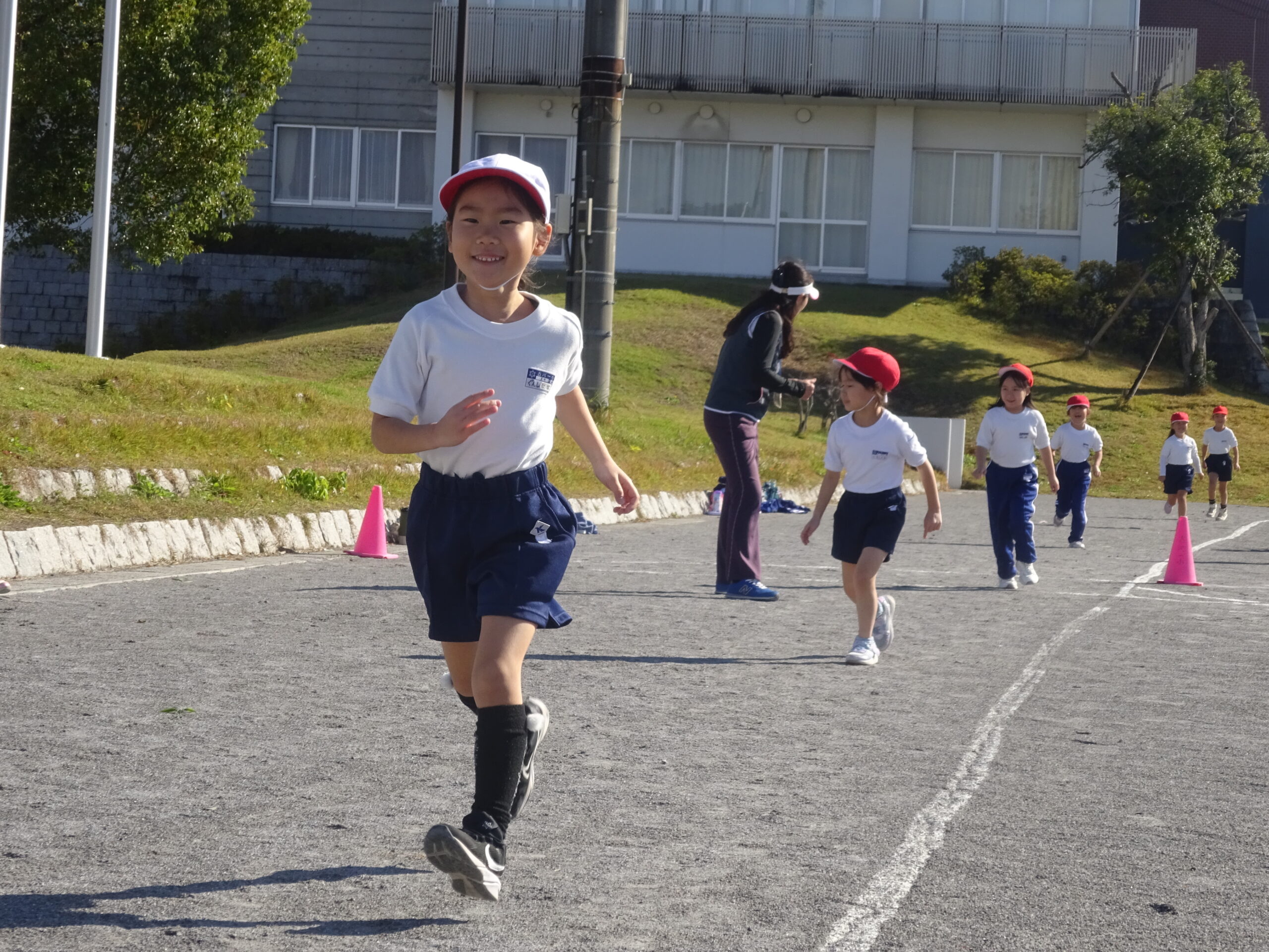 小学校初めての持久走が、来月に控えています。1年生も、初めて体育の時間に本番のコースを走ってみました。ゴールまで、走り続けるためにはどんなスピードで進めばいいのかを考えながら、最後まで諦めない気持ちで頑張りました。来週からは、タイムを計測し、ベストタイムを目指して走ります。業間ランニングも頑張りましょう!