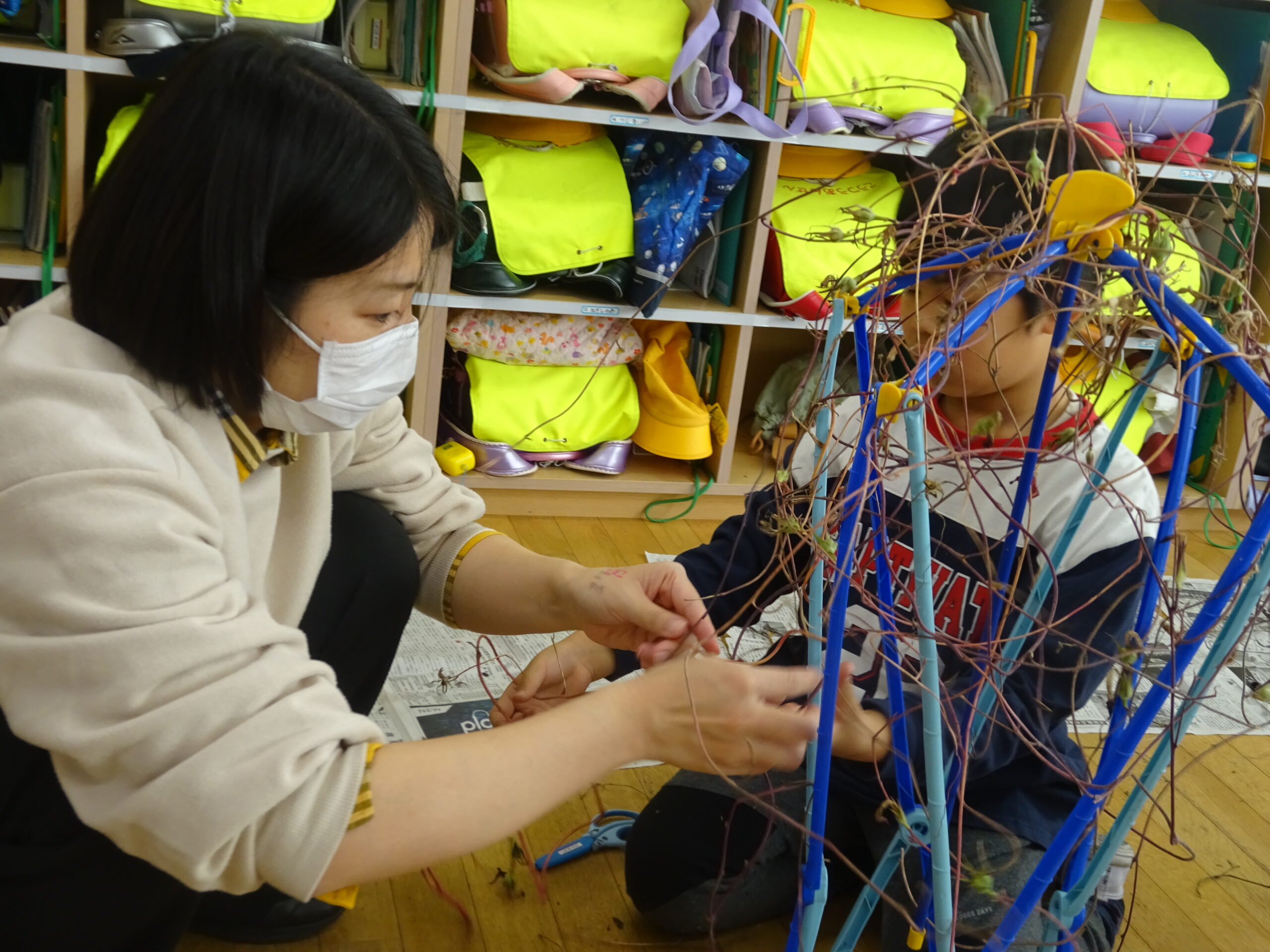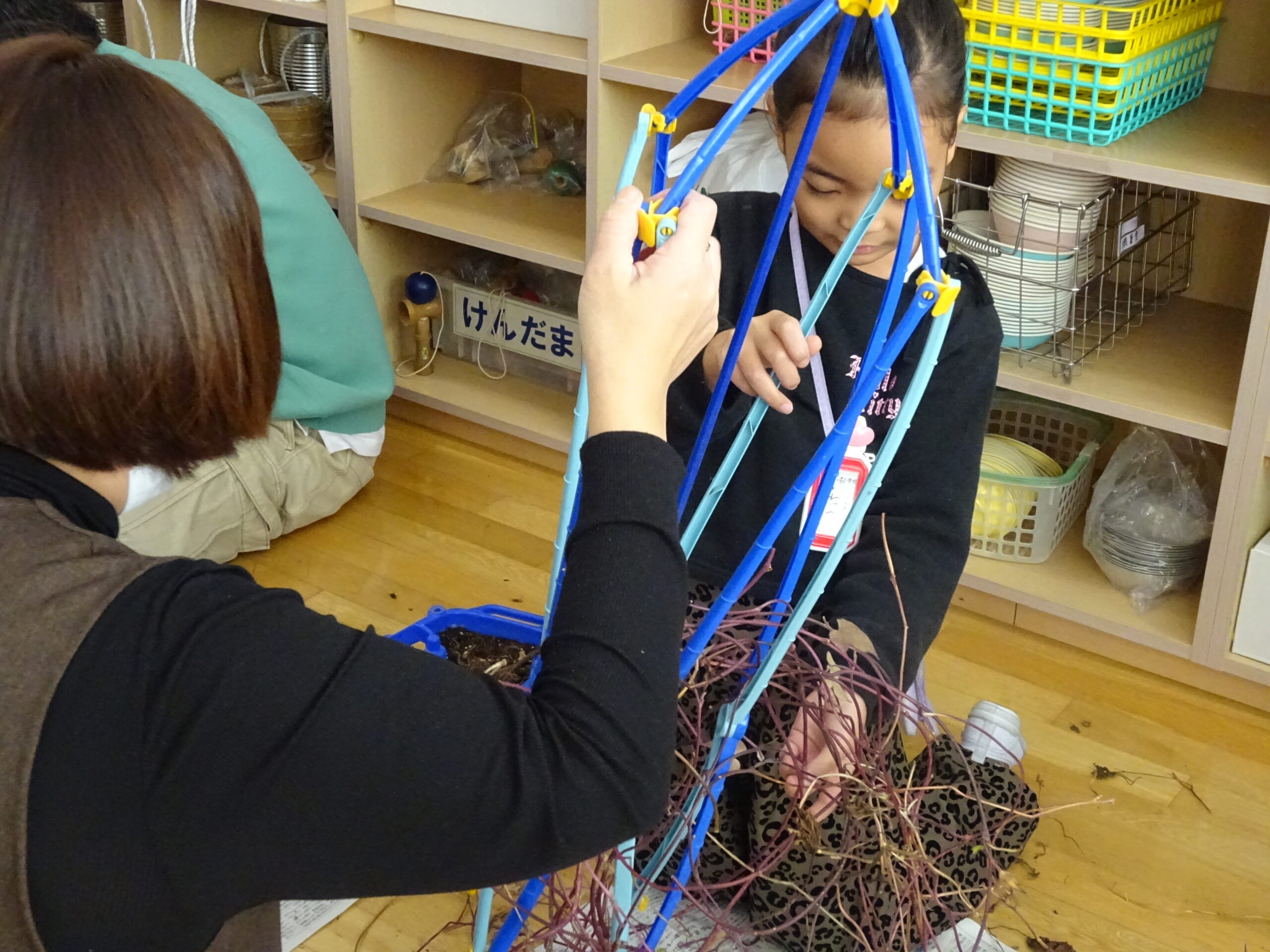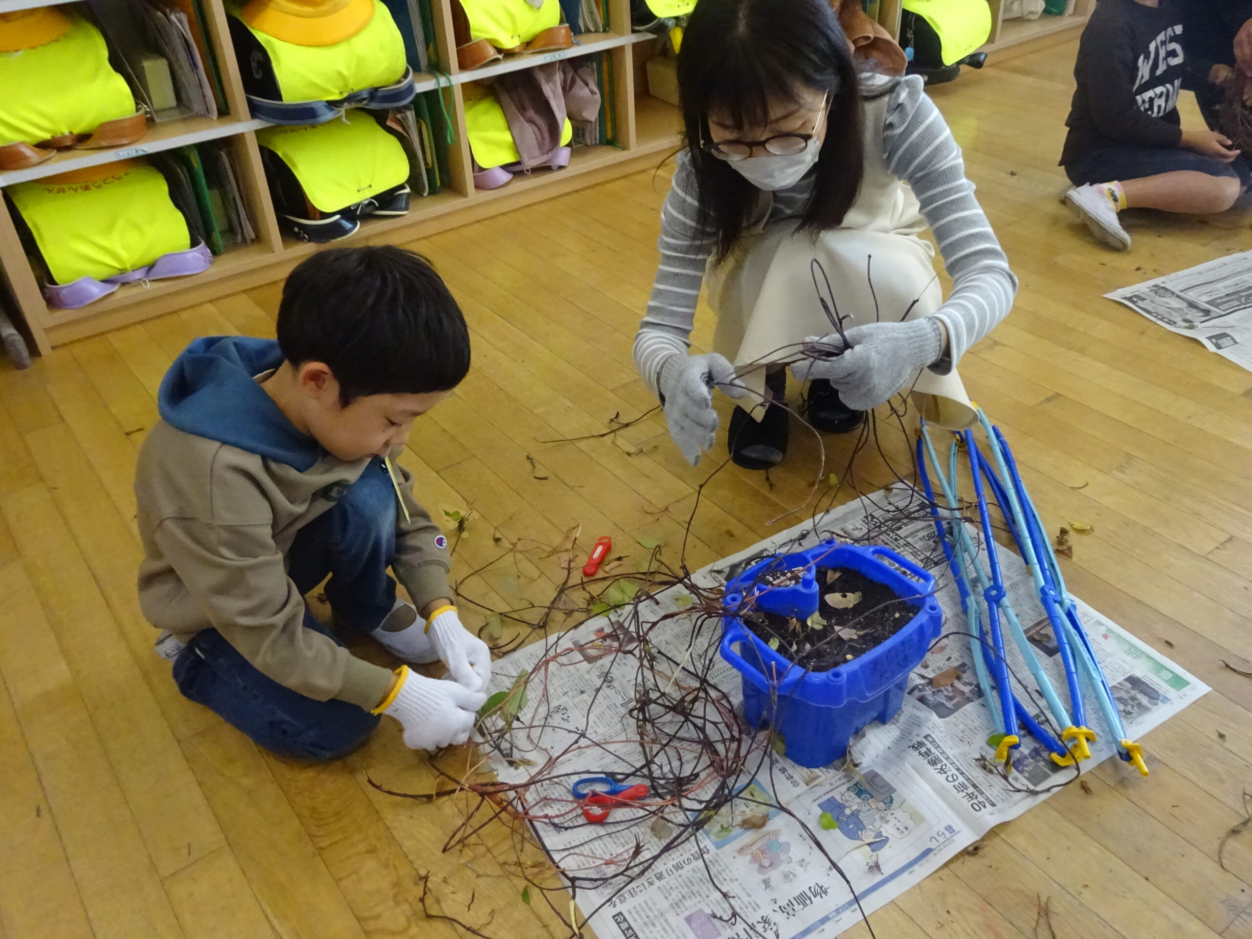 11月14日は親子ふれあい活動を行いました。1年生は、春から育てていたあさがおのツルを使ったクリスマスリースづくり。お家の人と協力して、支柱からあさがおのツルを剥がし、リースの形に成形しました。飾り付けの設計図も、楽しく考えました。 保護者の皆様、お忙しい中、ご来校いただきありがとうございました。素敵なリースが完成しました!