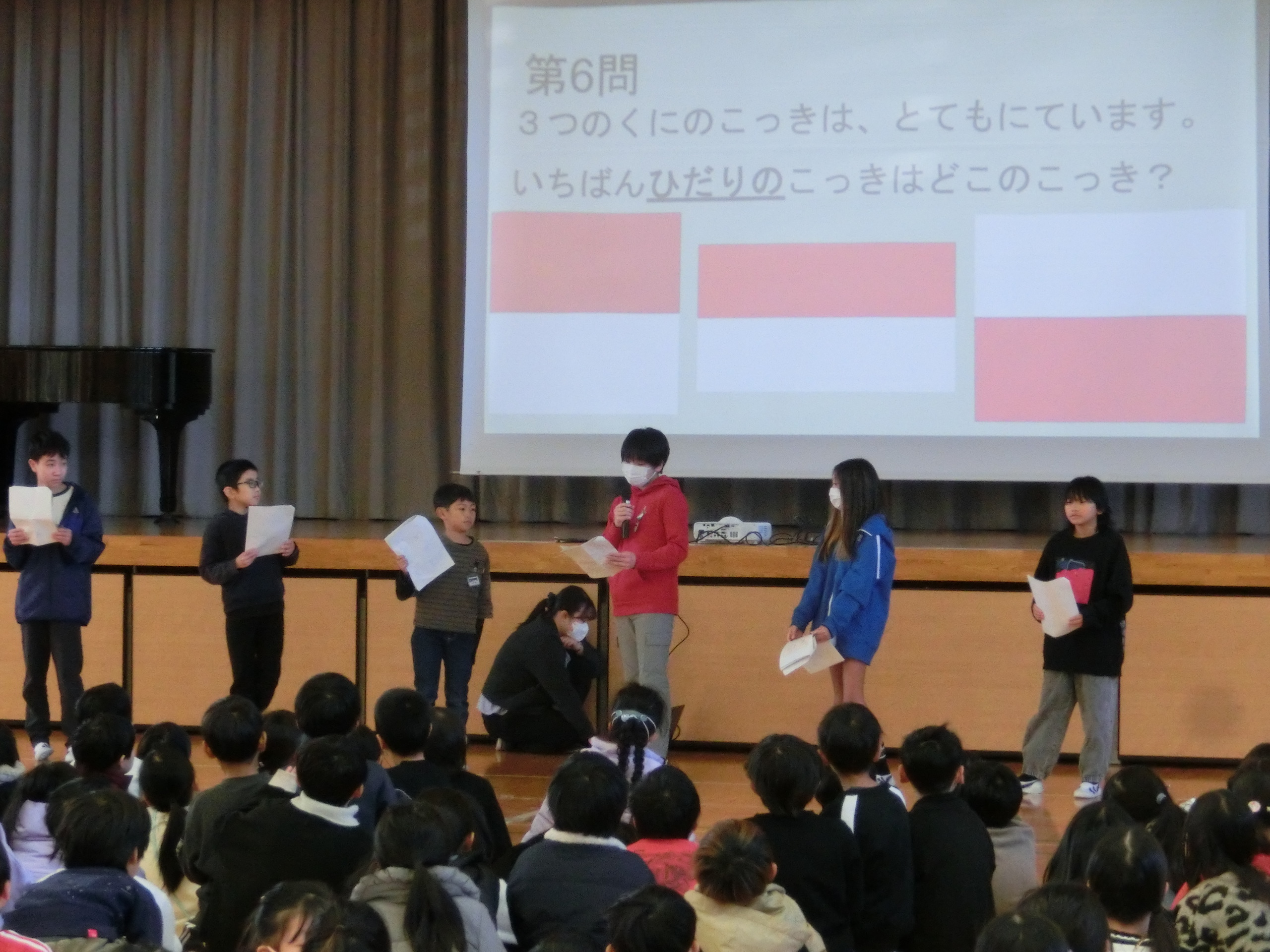 はじめのつどいでは、お店紹介と、世界クイズが行われました