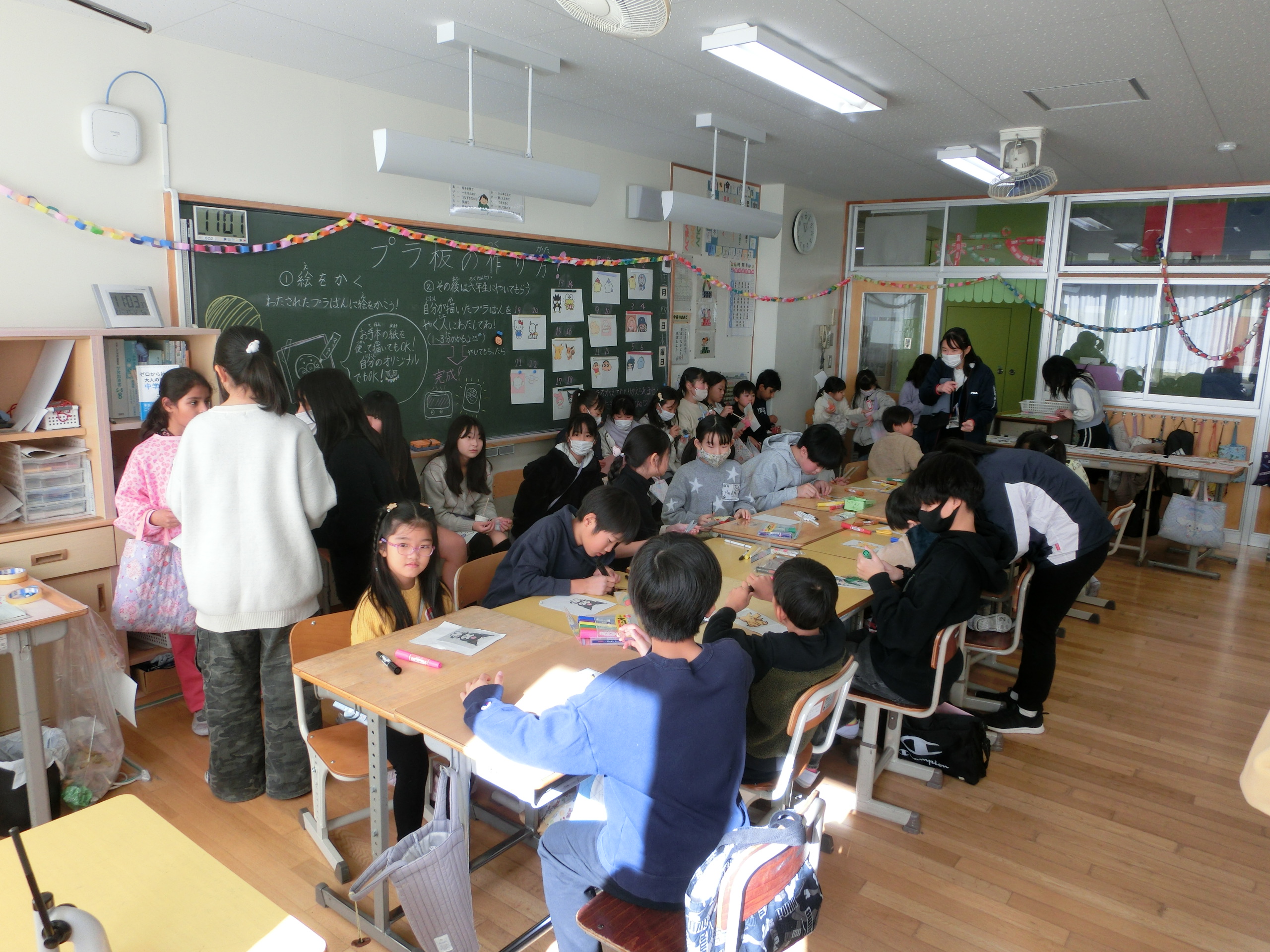 6年2組では、浪漫飛行とプラ板の店を出しました。