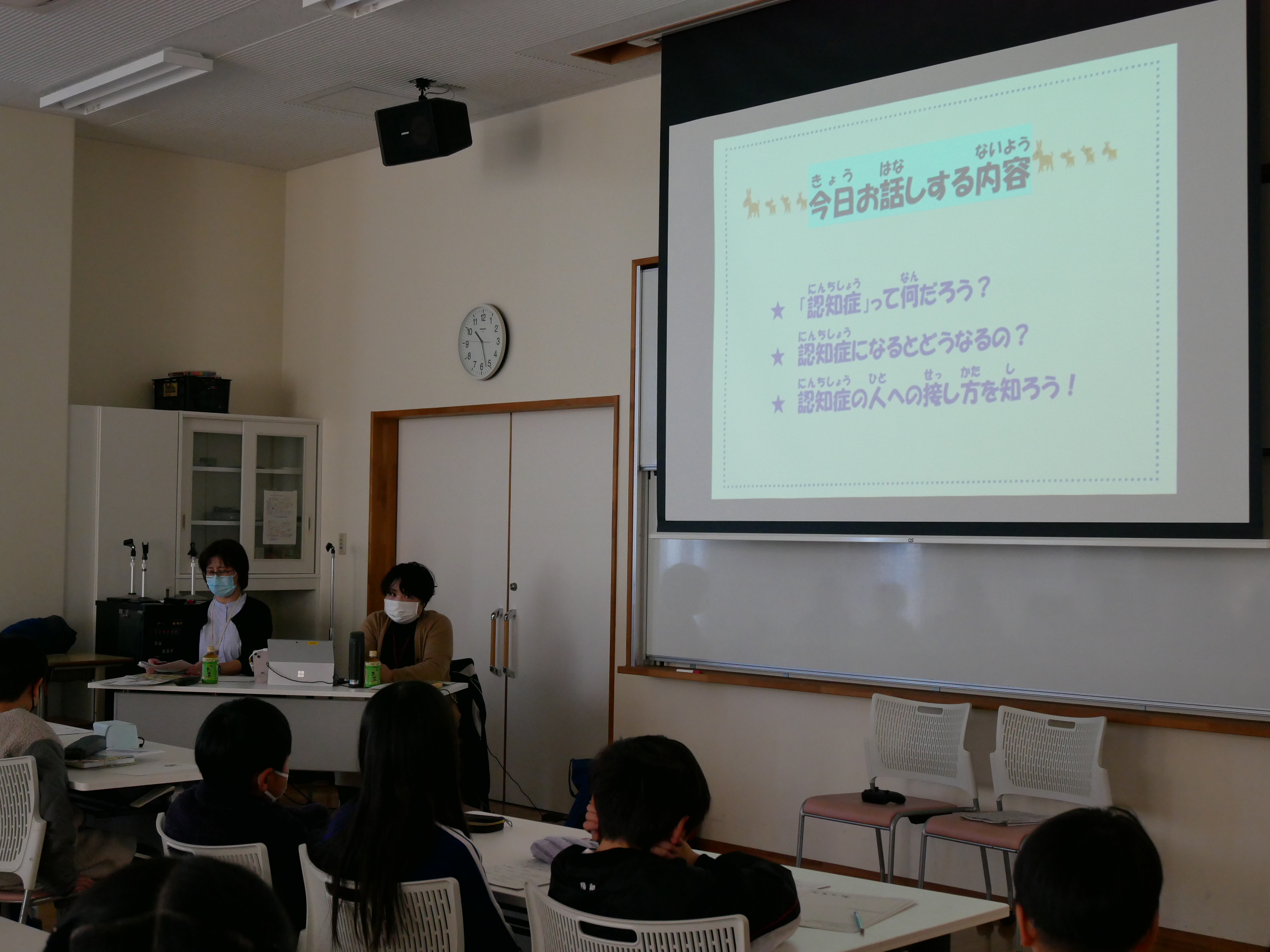 認知症について正しく学び、身近な人が認知症になったらどう接すればいいか、じっくりと考え話し合いました。相手の気持ちを想像しながら「優しく声をかけたい」と意見を出し合う姿には、頼もしさと温かさを感じました。困っている人に自然と手を差し伸べられる優しい心が育っています。ご家庭でも話題にあげていただけるとありがたいです。
