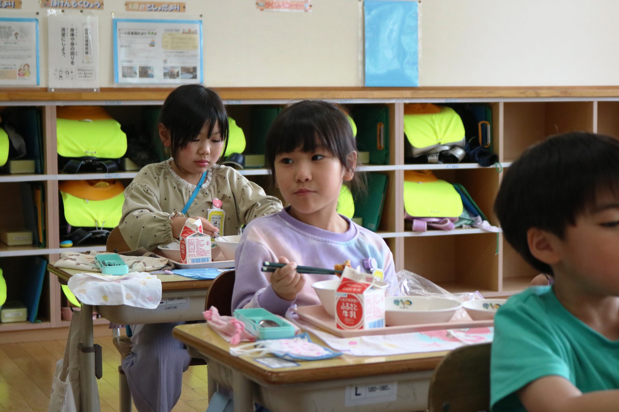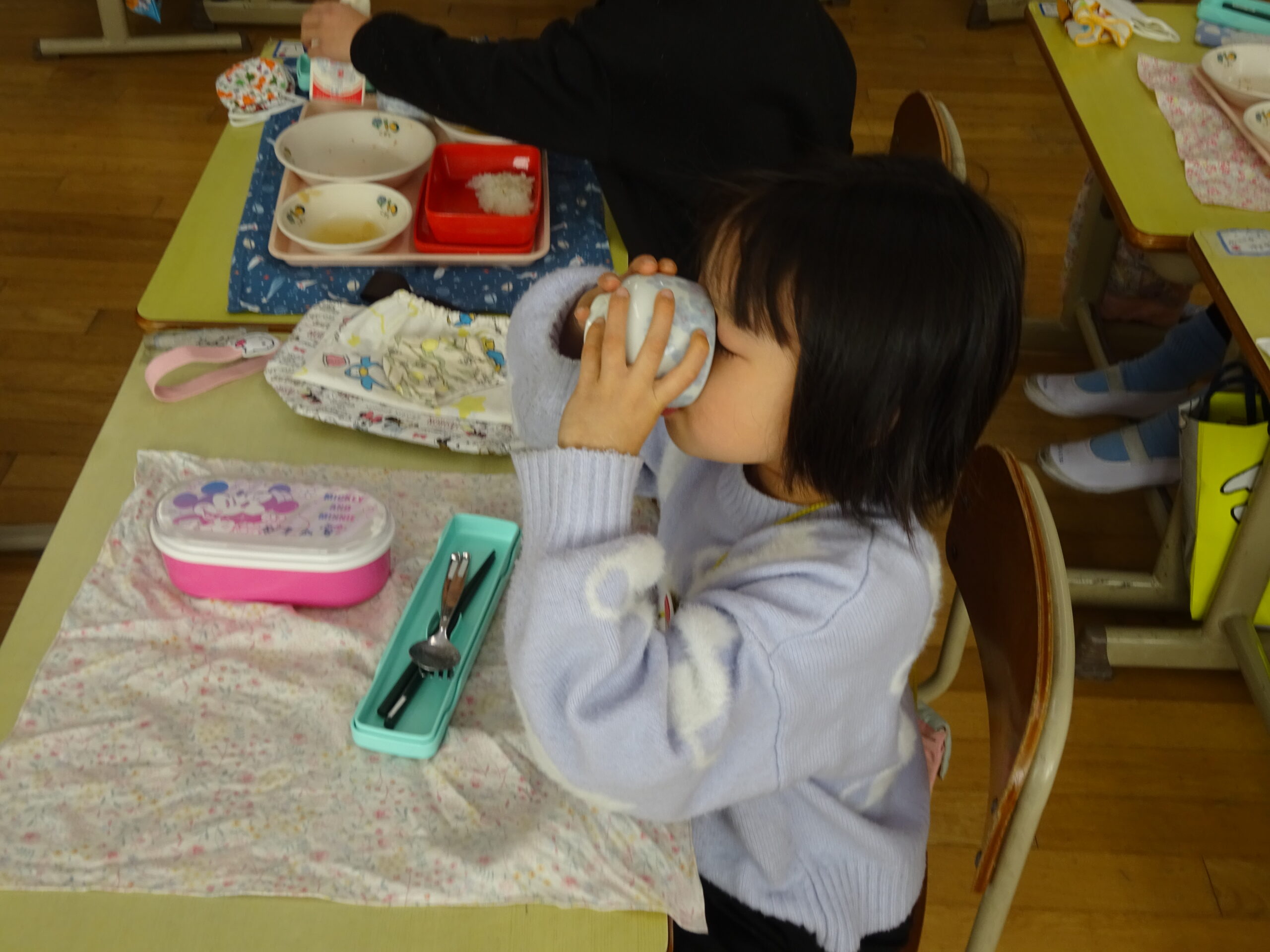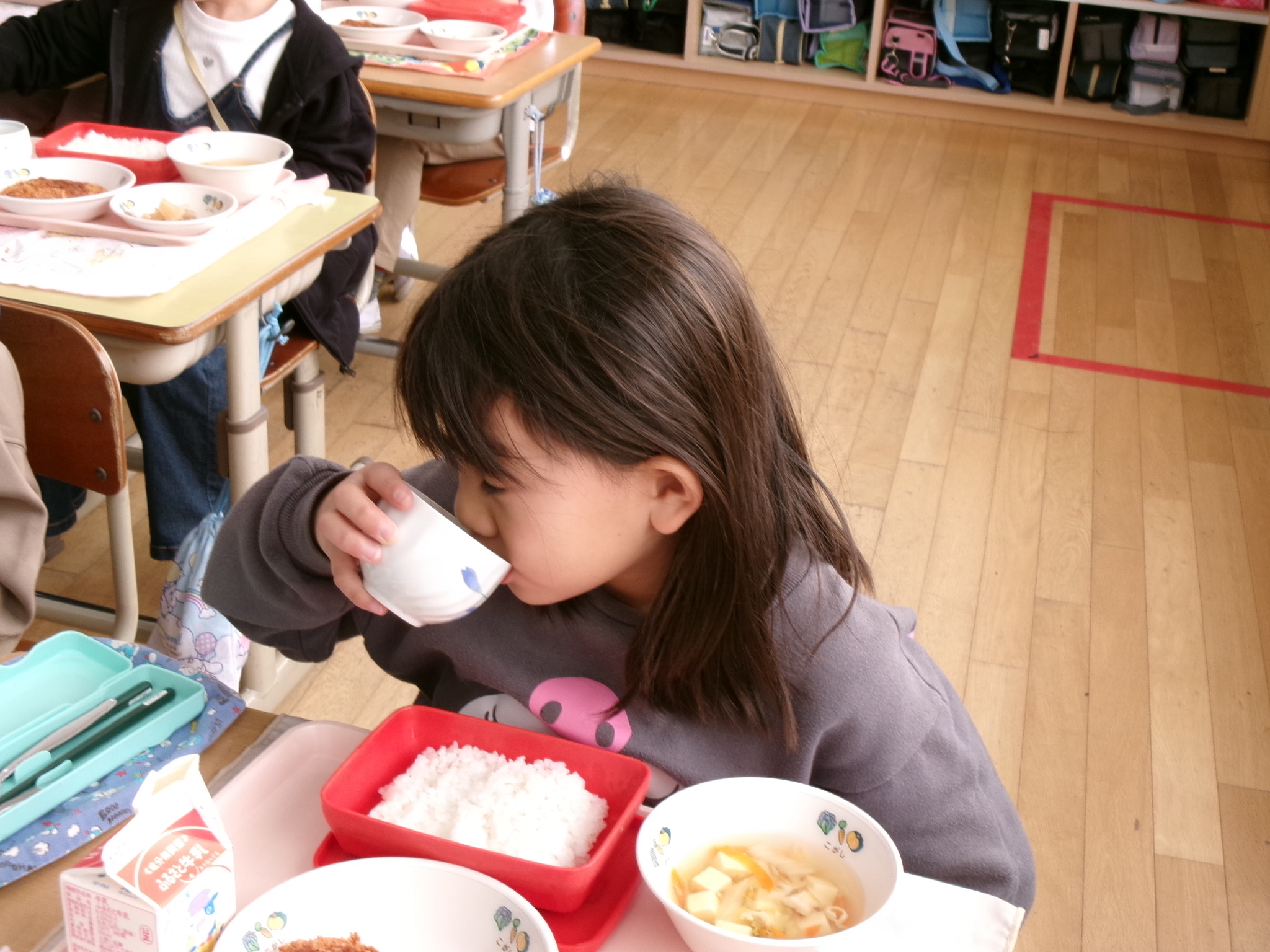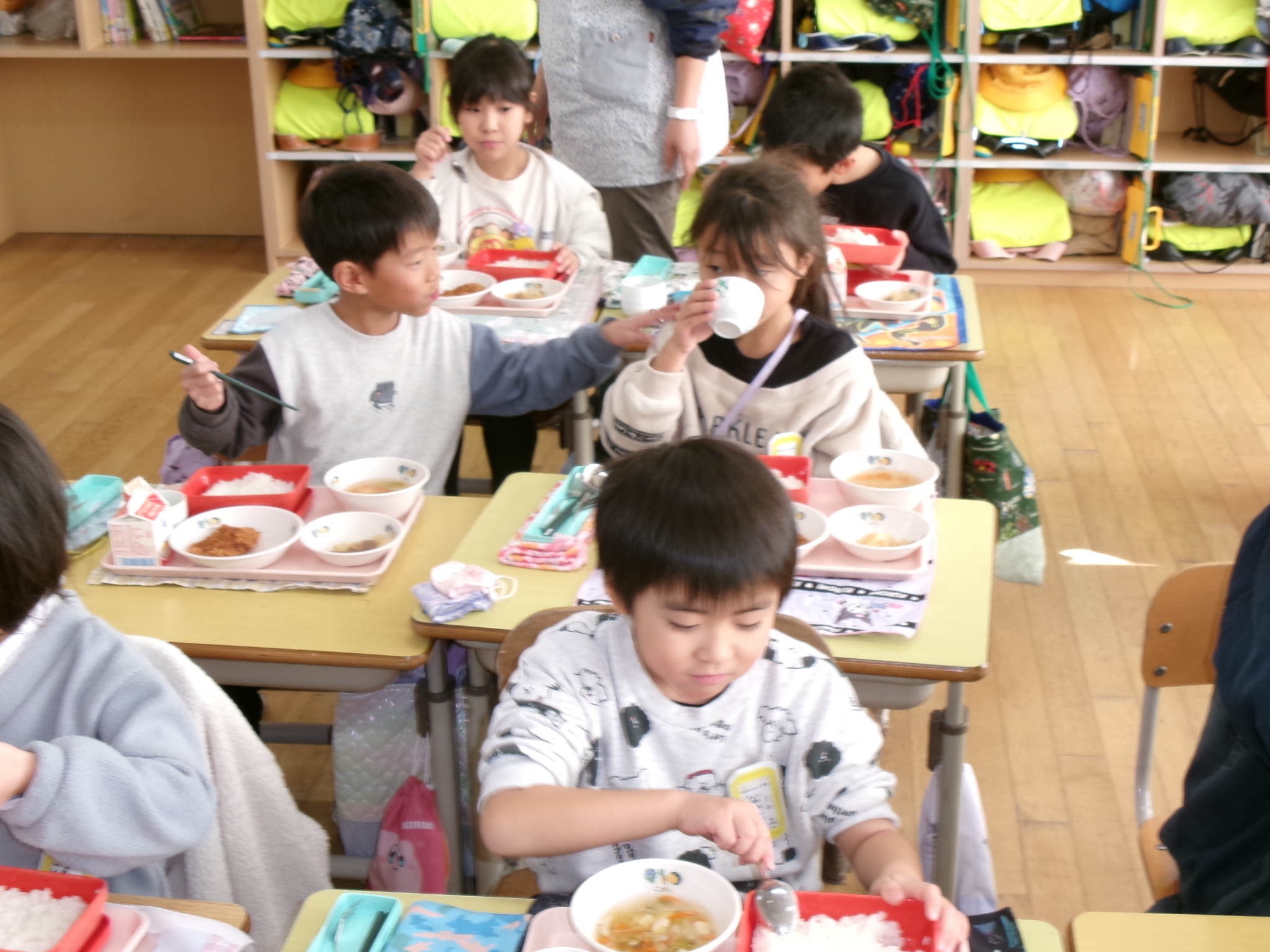 12/18に、本校学区内の塚田製茶店の方にご来校いただき、給食に合わせてお茶を提供していただきました。両手で湯飲みを上手に持って、ゆっくり味わいながら美味しくいただいていました。