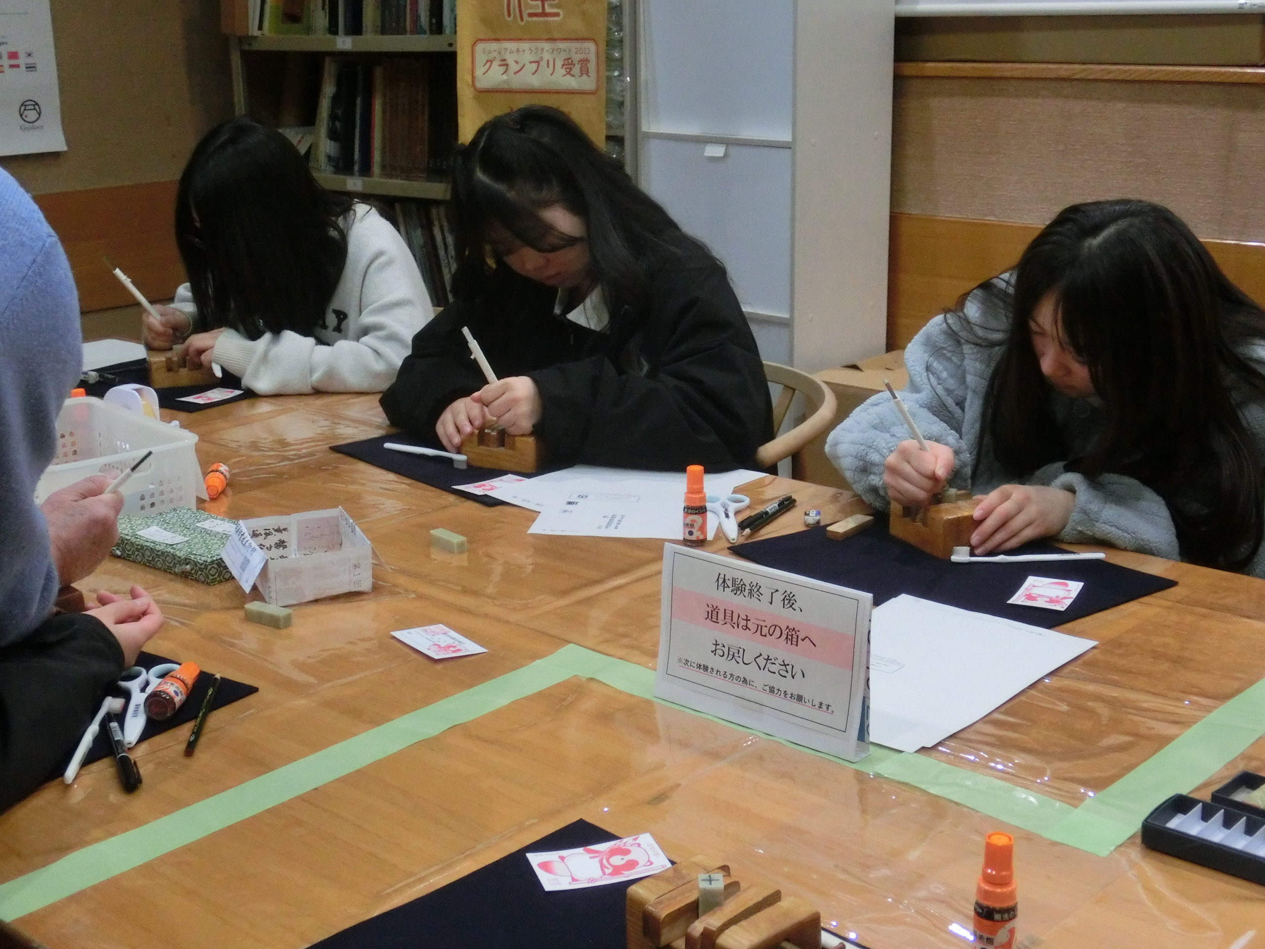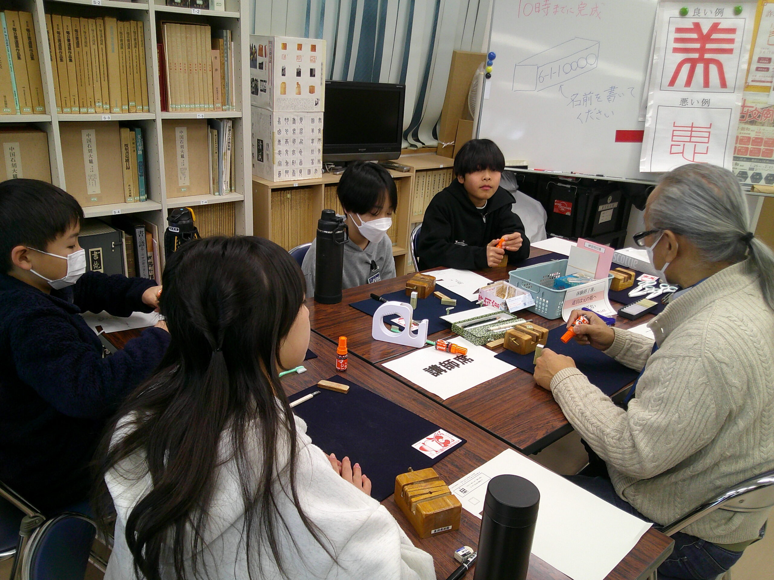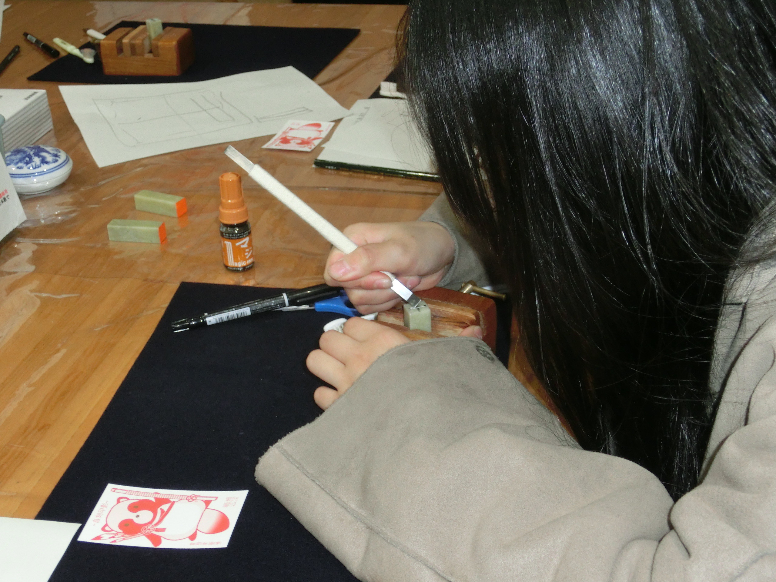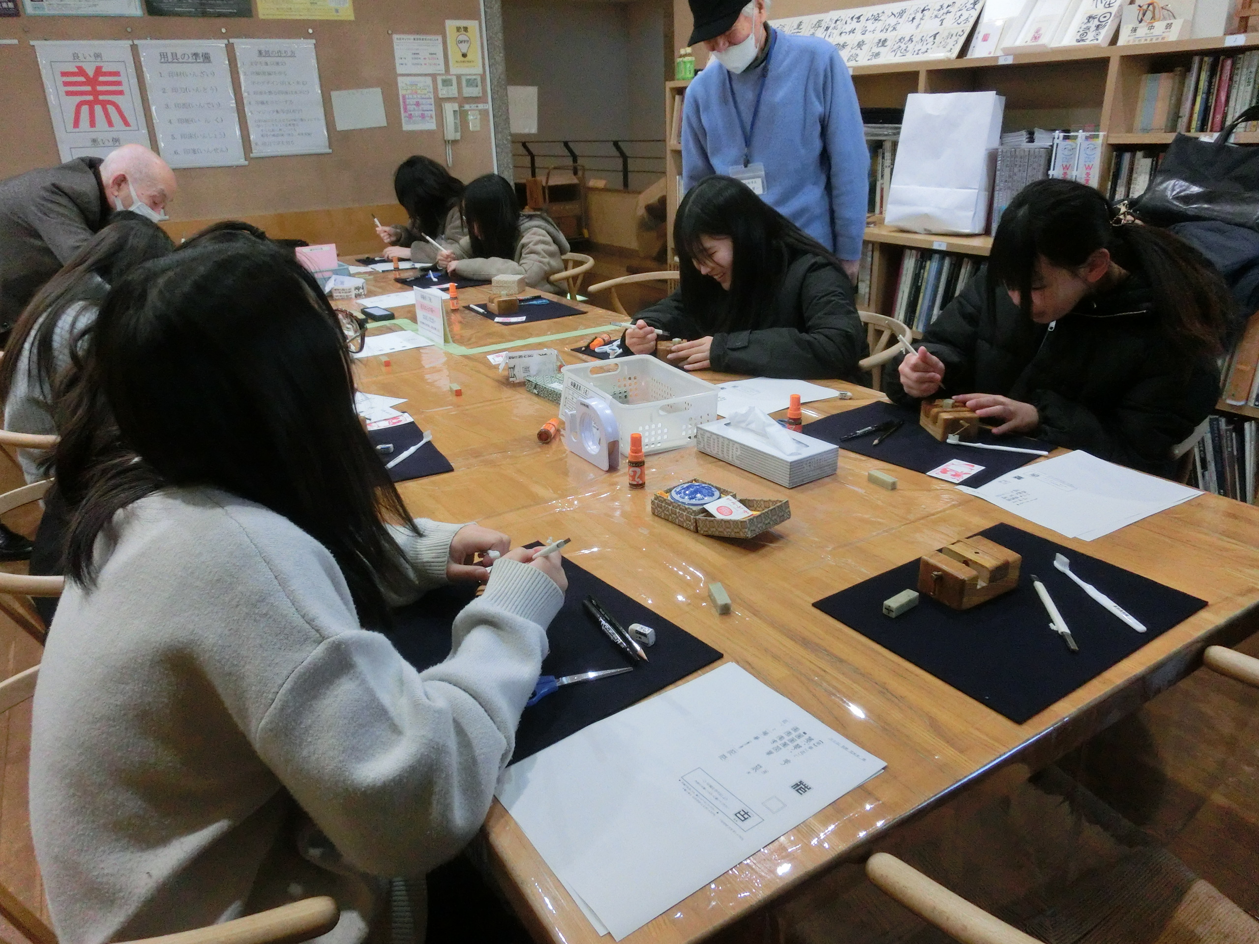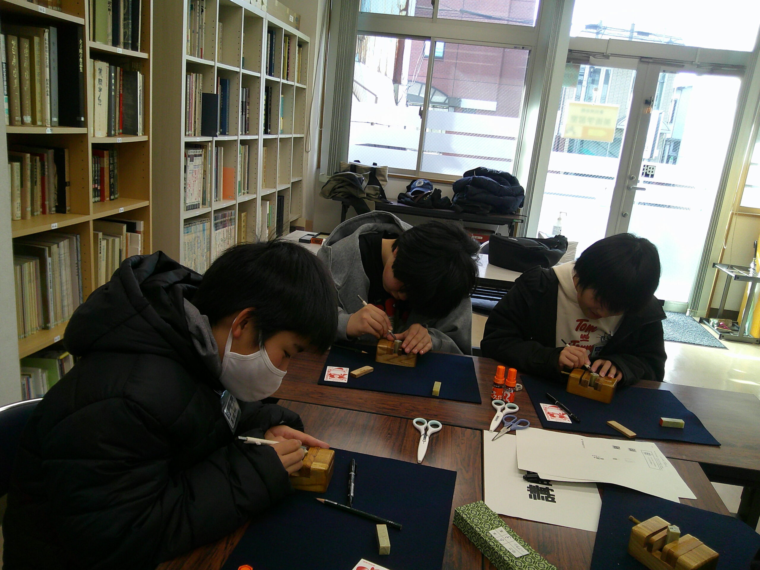篆刻美術館に行き、篆刻印を彫る体験をしました。みんな集中して取り組むことができました。