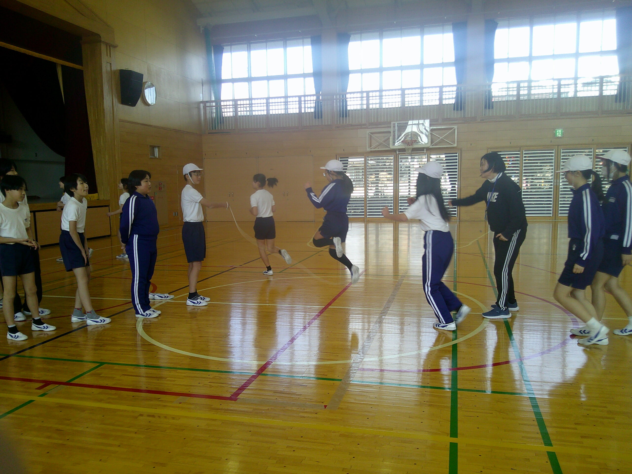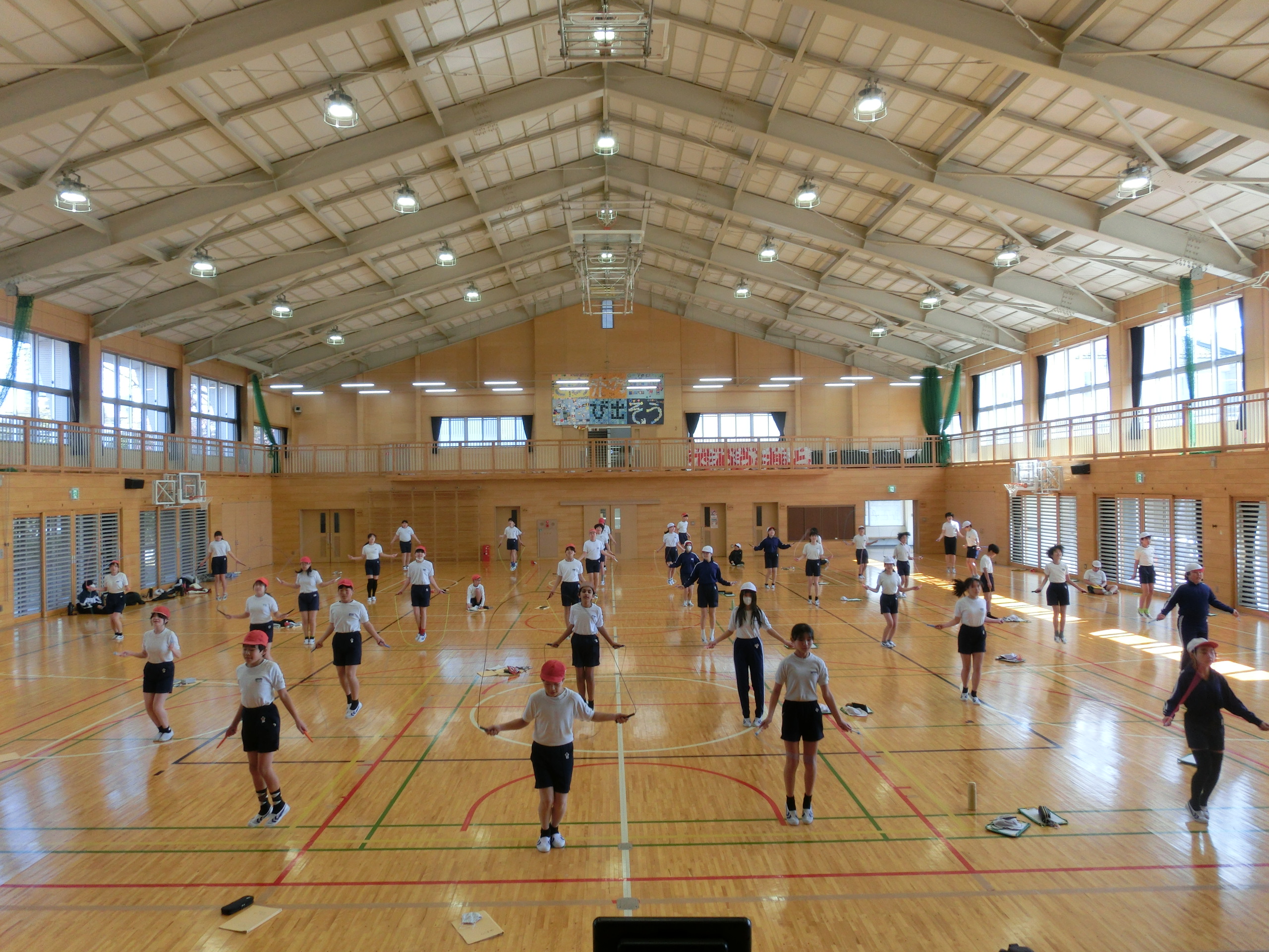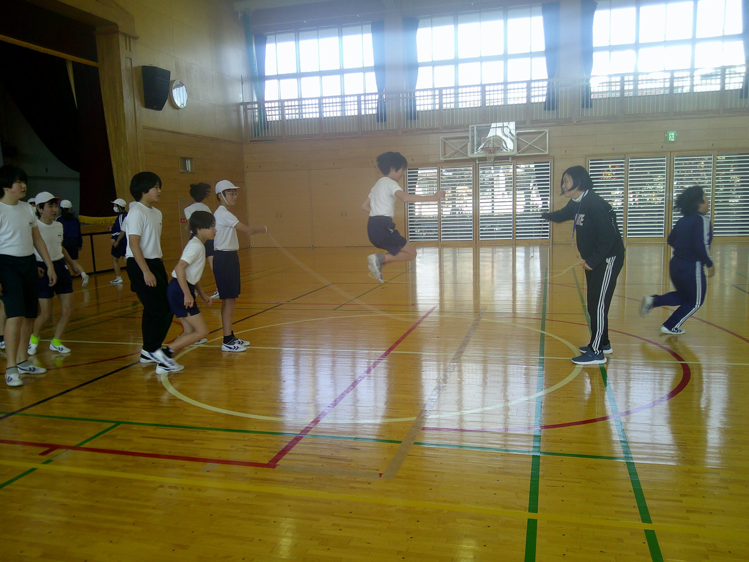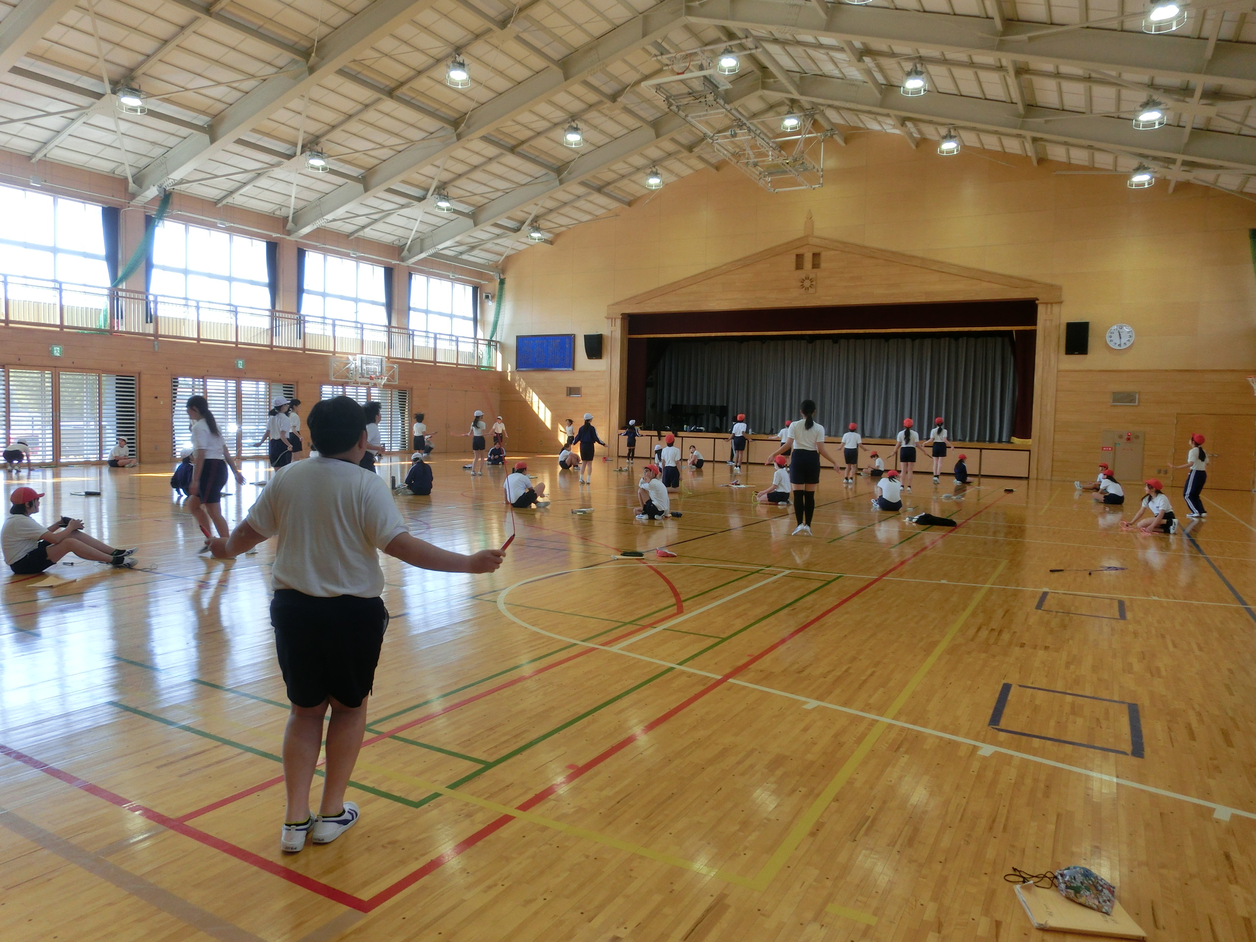 6年生のなわとび集会が行われました。なわとび集会では、3分間前跳び、個人跳び、8の字跳びの順に行いました。今までの練習をいかせるように、集中してがんばる姿が見られました。