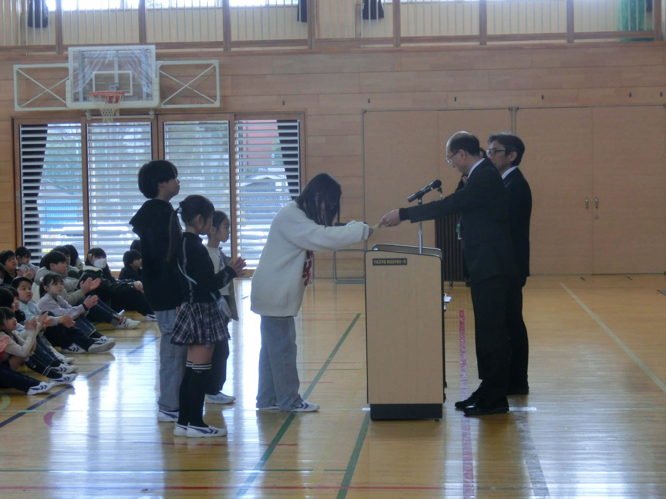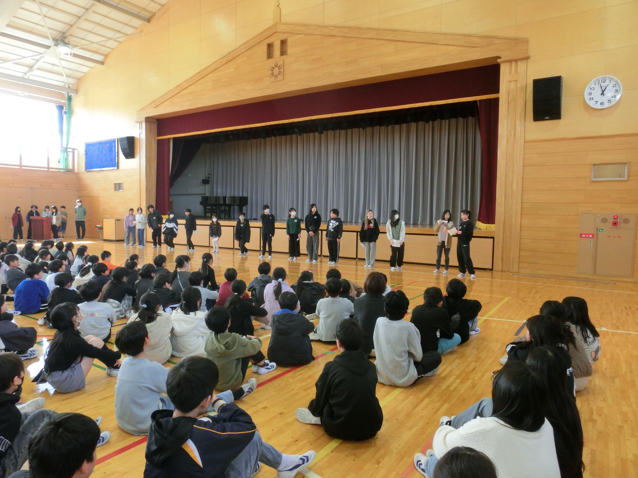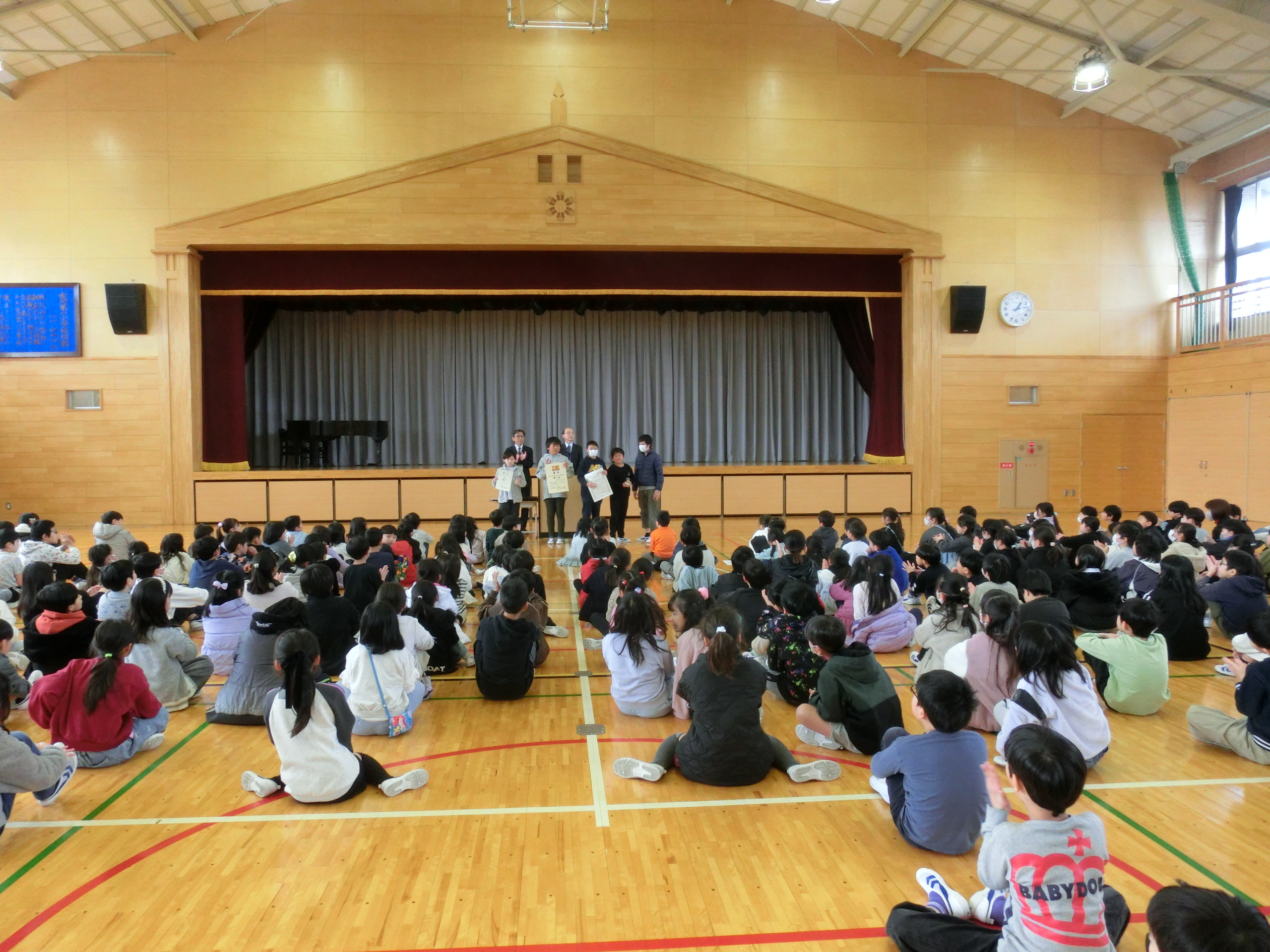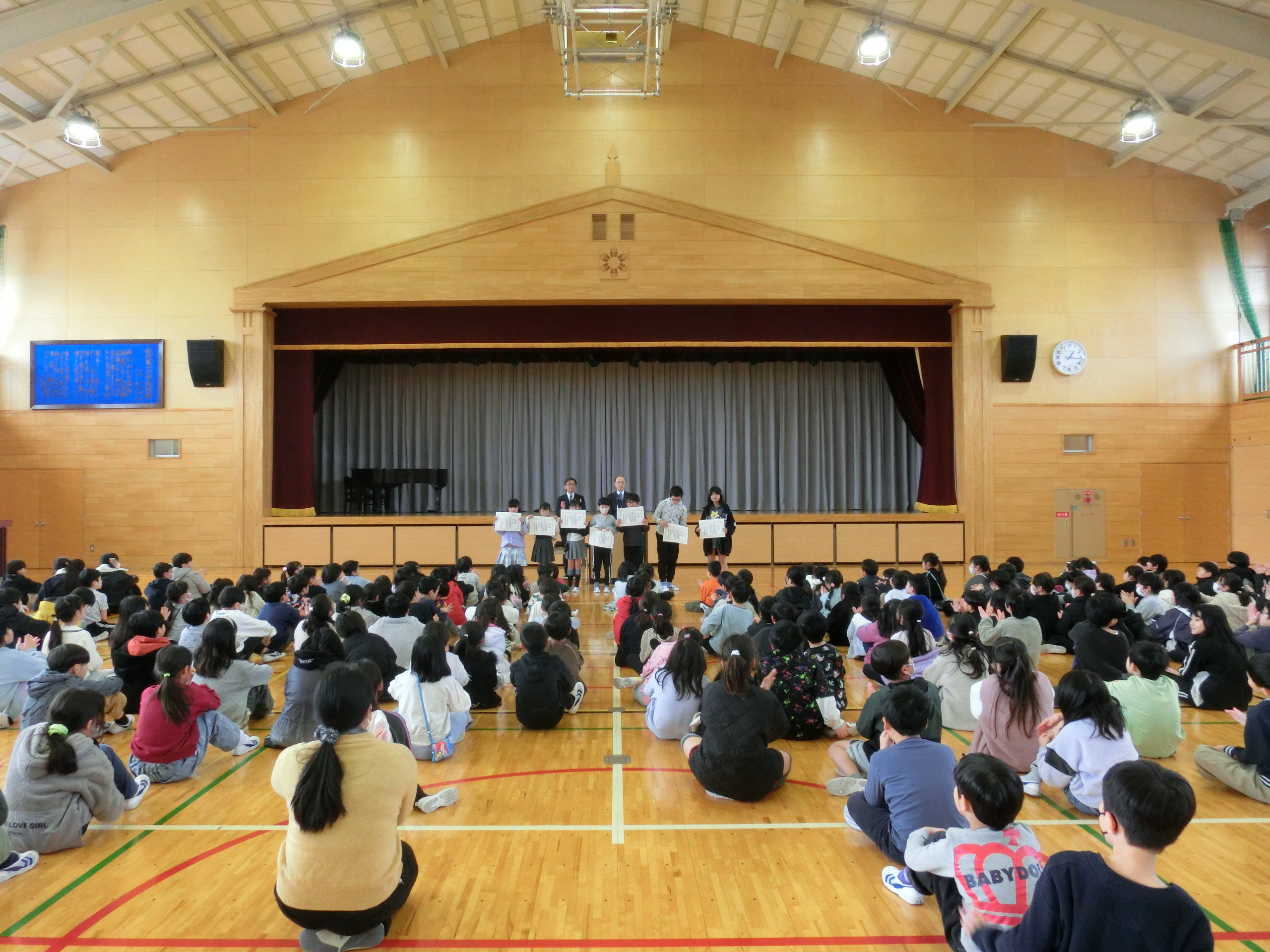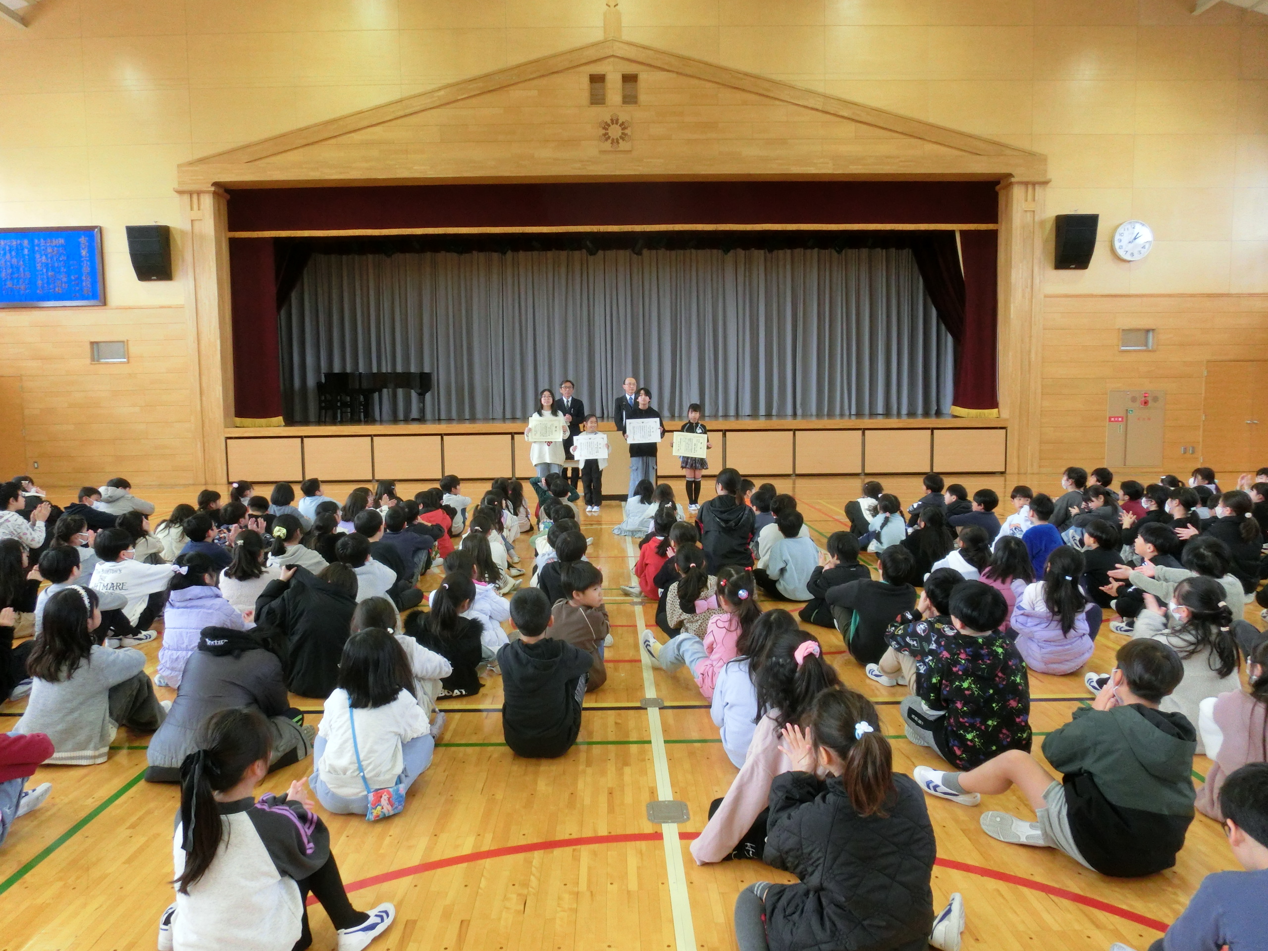 本年度最後の児童集会が行われました。各委員会から、今年度に行った活動の報告や来年行いたい活動などについて発表がありました。 その後、表彰式が行われ、たくさんの児童が表彰されました。