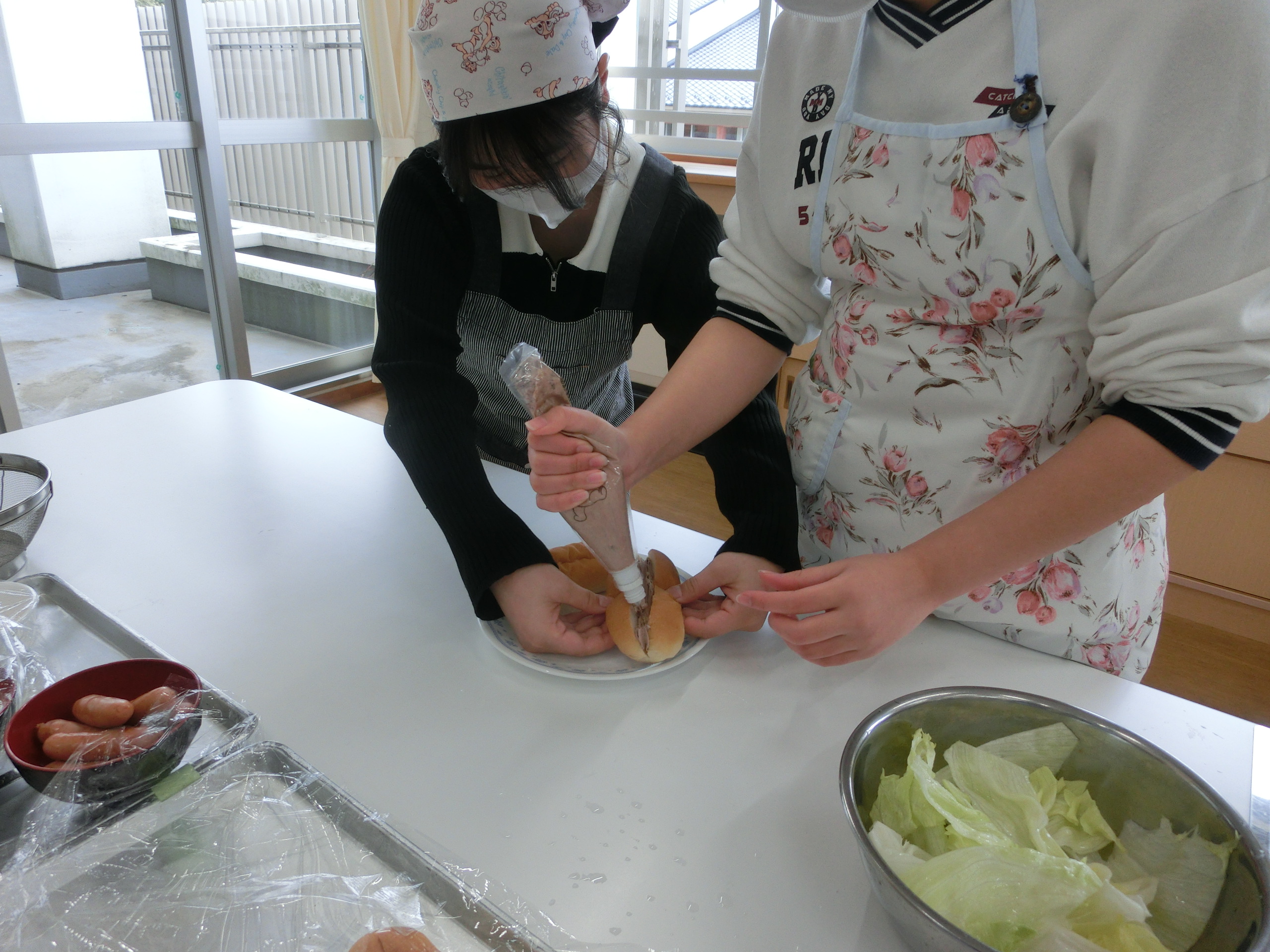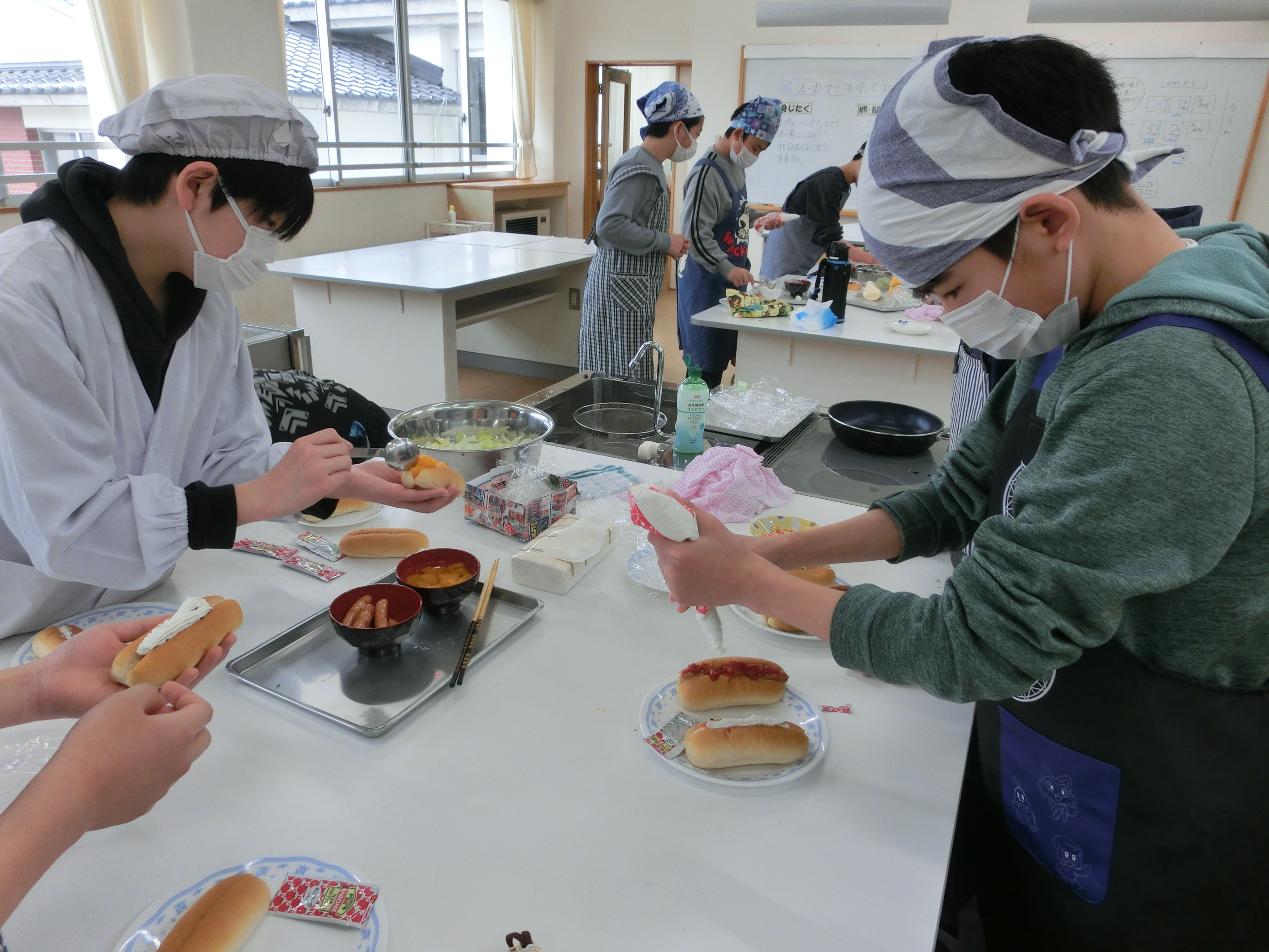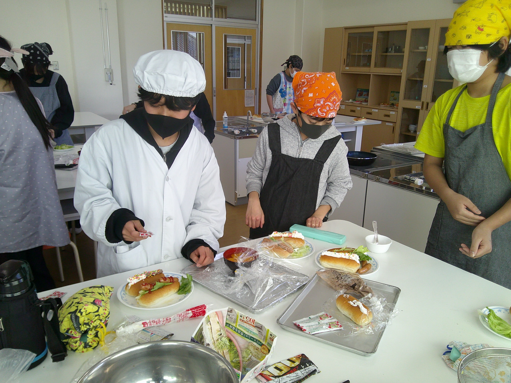 おめでとう・ありがとう調理実習と題して、コッペパンサンドを作りました。見た目や味にこだわり、楽しく作ることができました。残さずおいしくいただきました。
