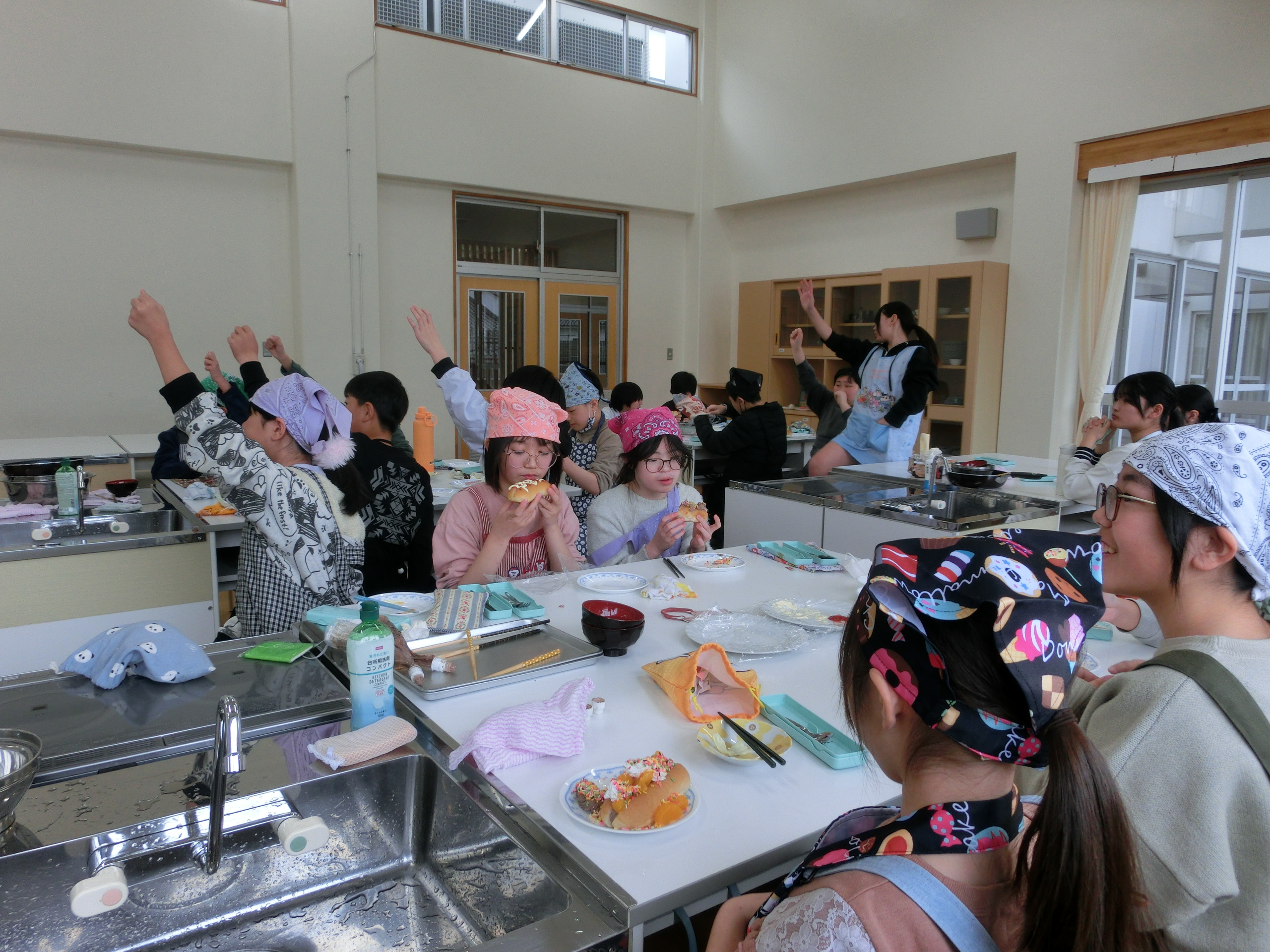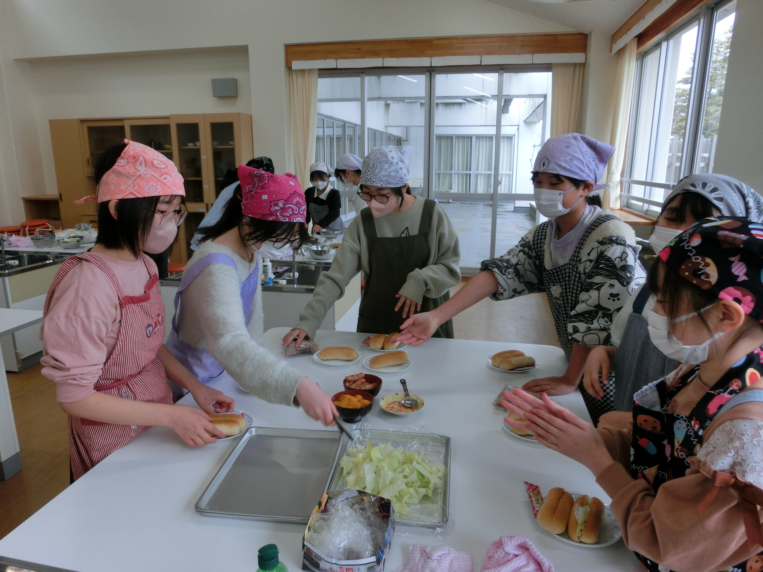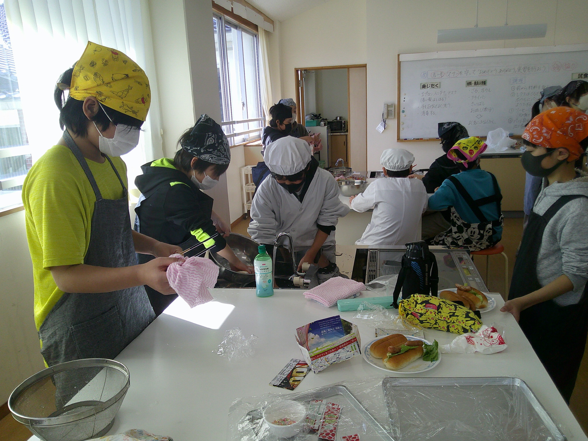 おめでとう・ありがとう調理実習と題して、コッペパンサンドを作りました。見た目や味にこだわり、楽しく作ることができました。残さずおいしくいただきました。