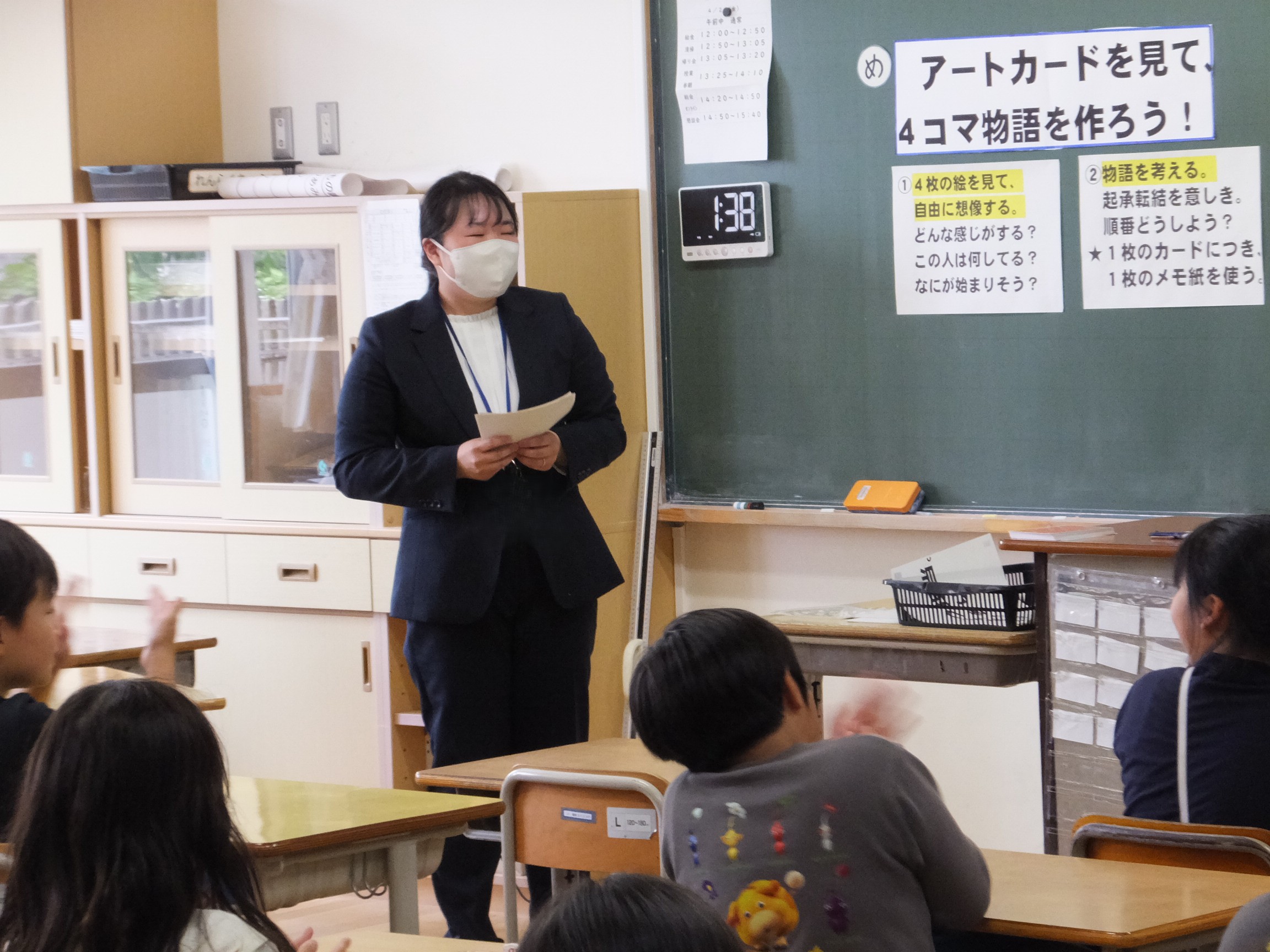 2組は図工の授業で、アートカードを使ってお話を作ることに挑戦しました。